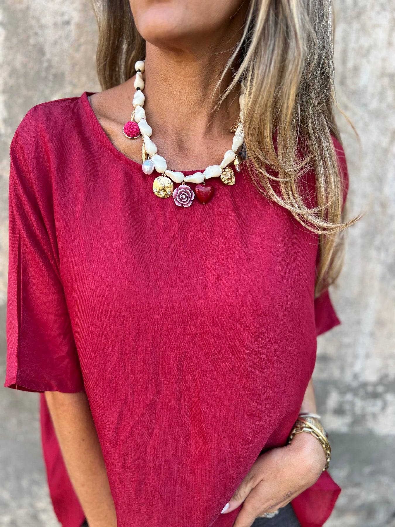 Blusa de tela cey, liviana y muy rica. Incluye collar