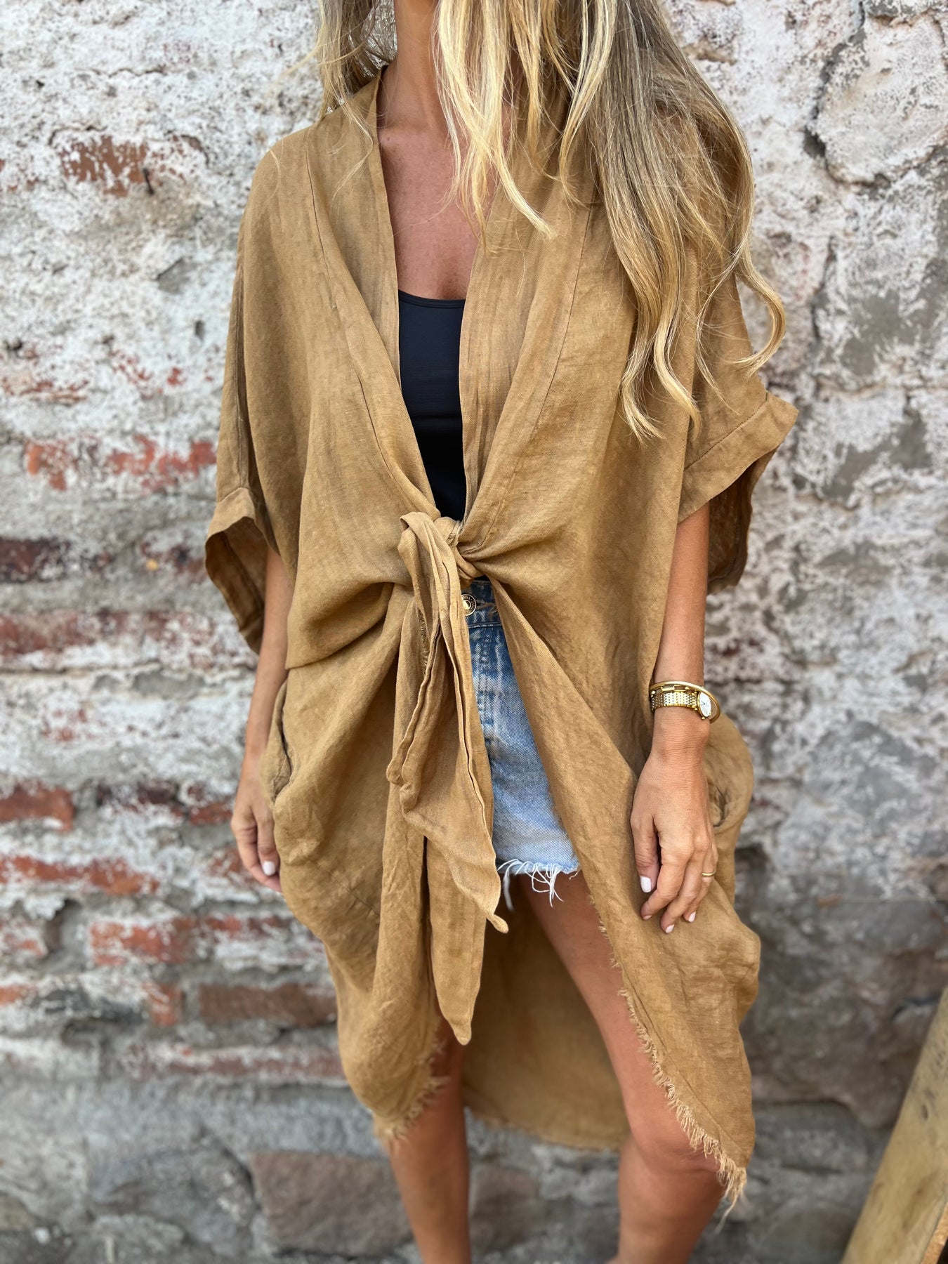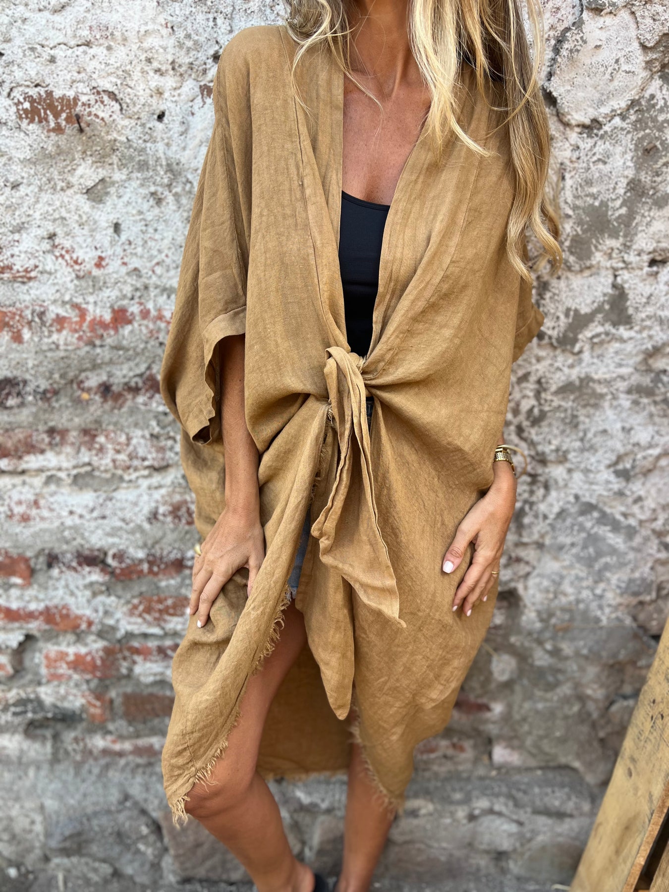 Maxxi kimono 100% lino italiano terracota