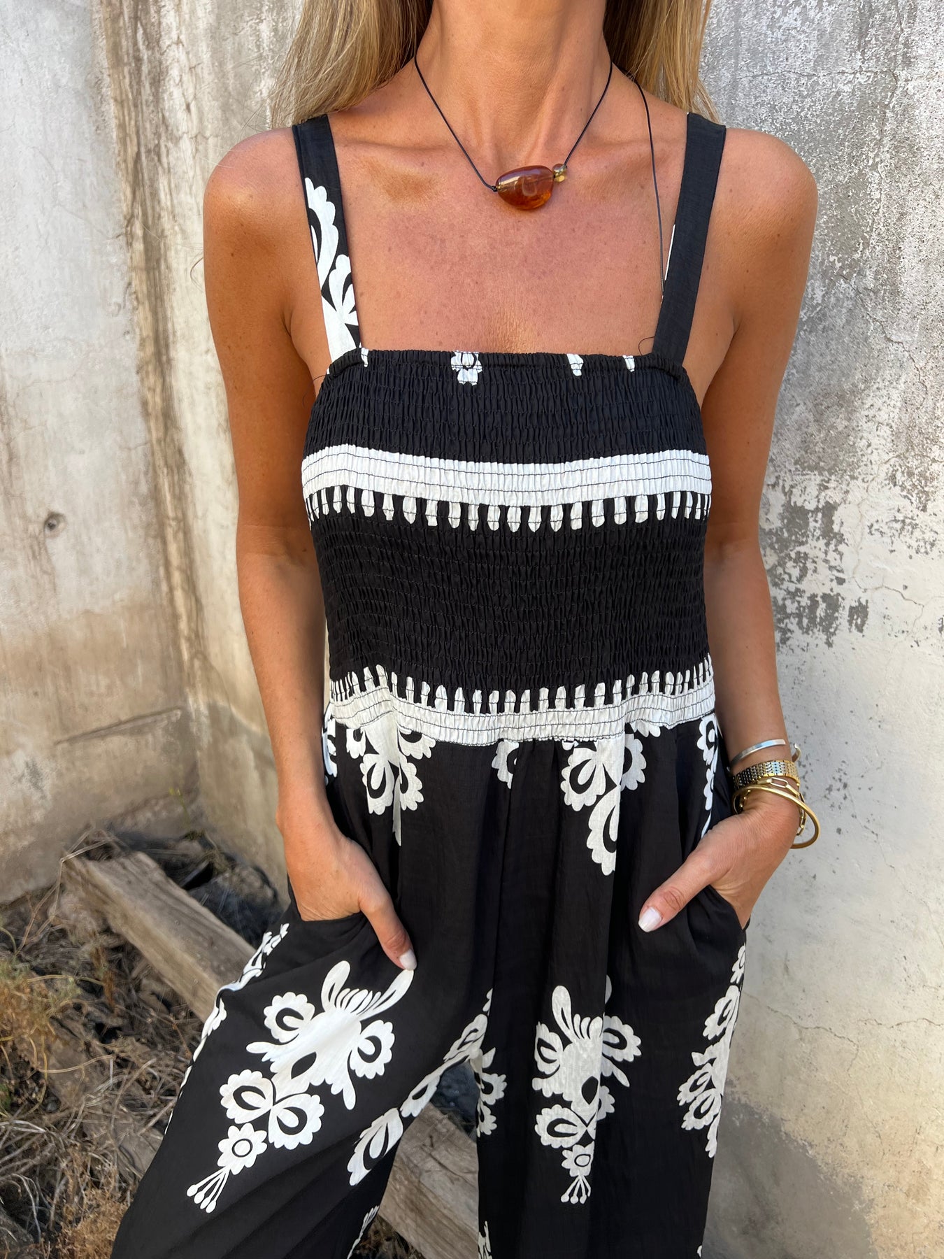 Enterito de viscosa con escote de nido de abeja