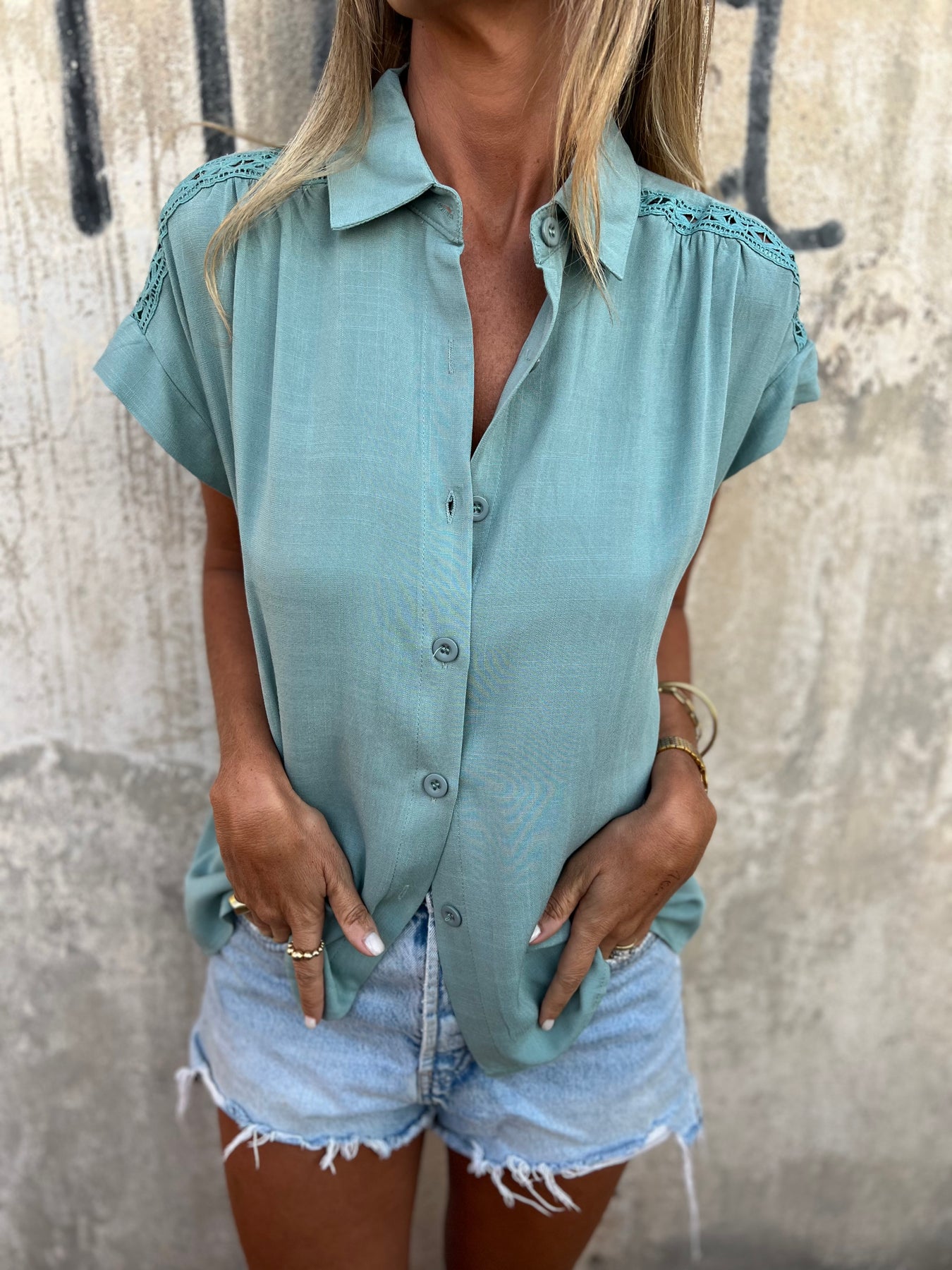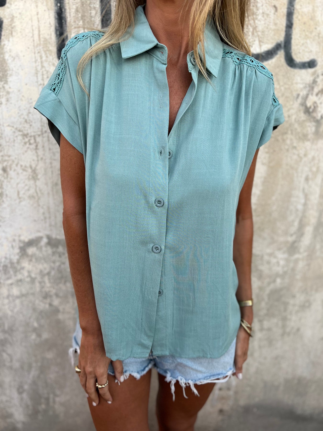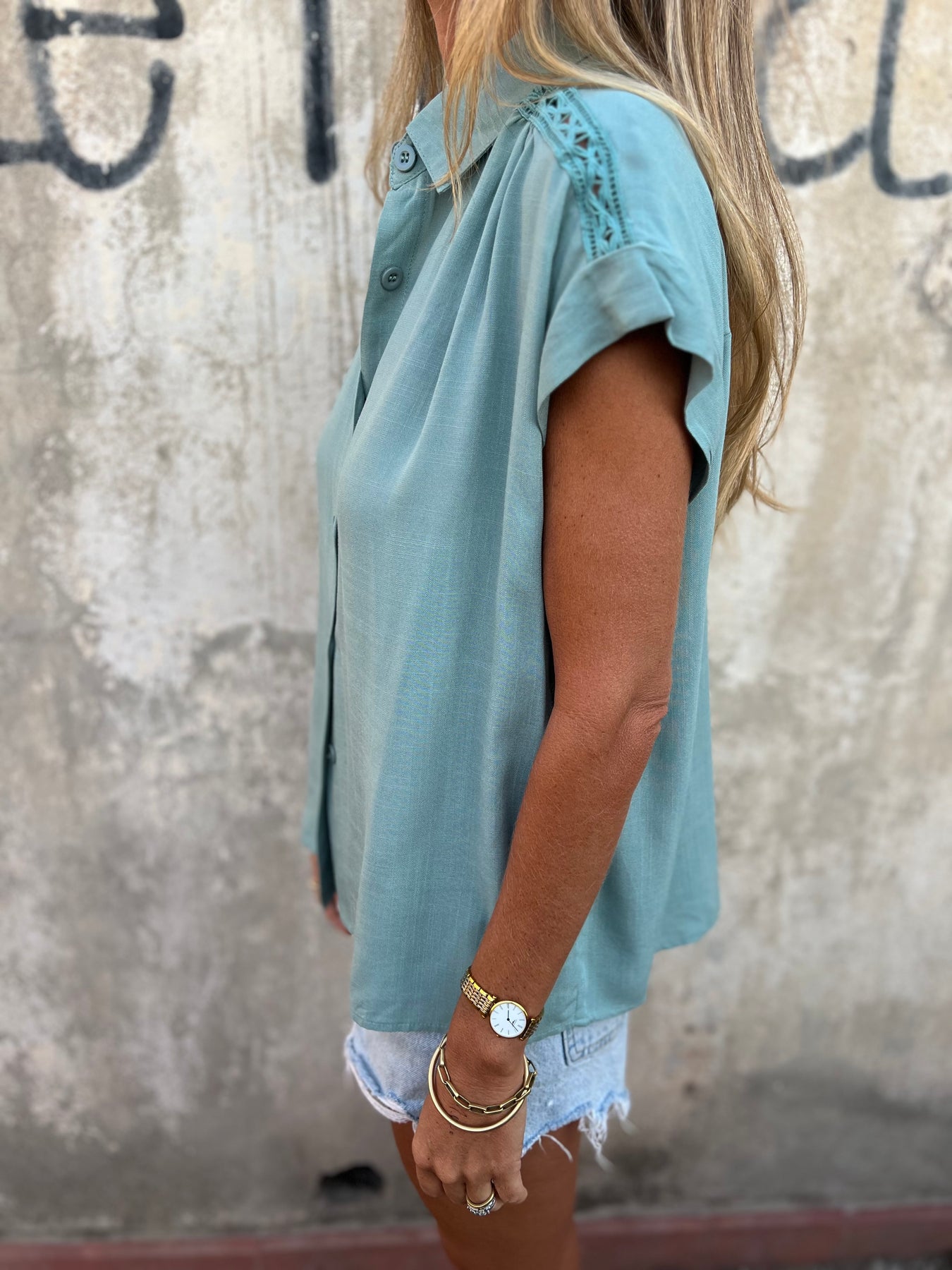 Blusa de linoto muy suavecito y liviano. Detalle de broderie en los hombros.