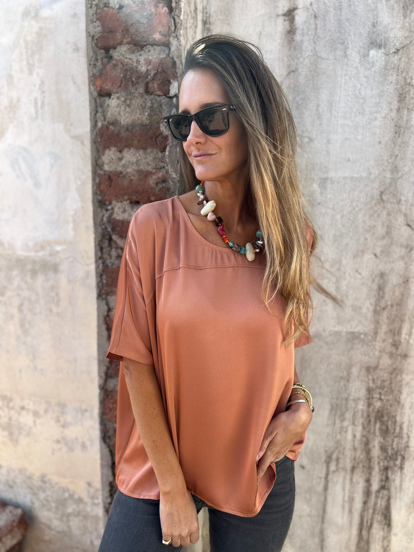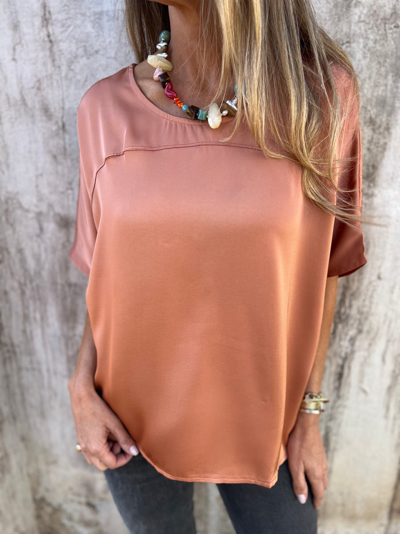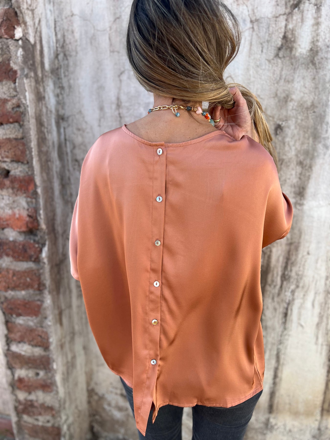 Blusa de raso grueso pesado y muy suave.