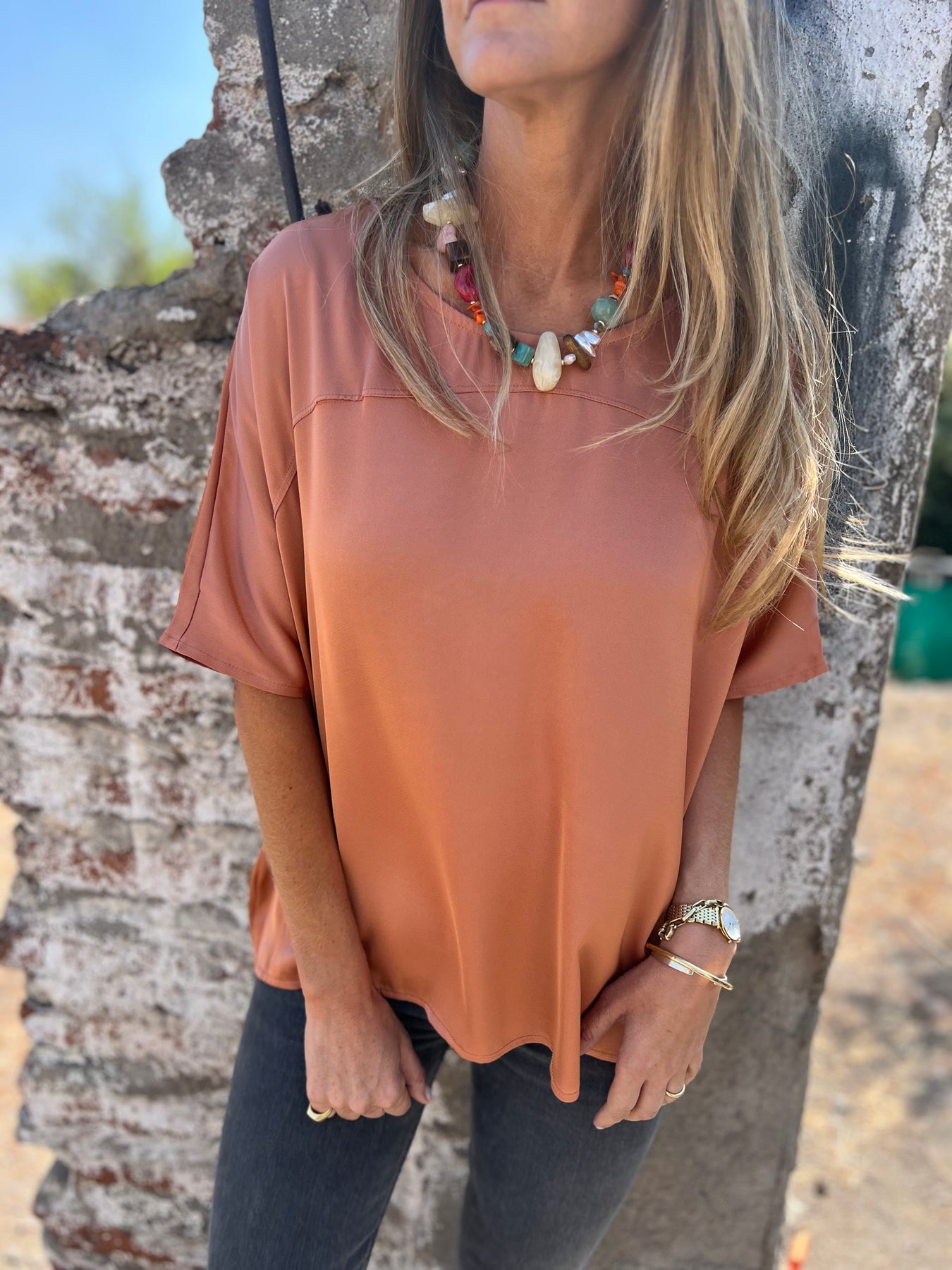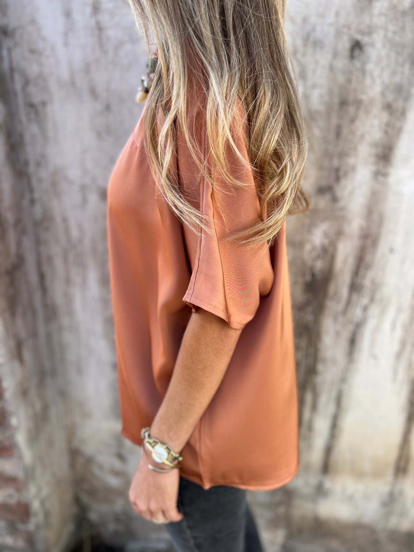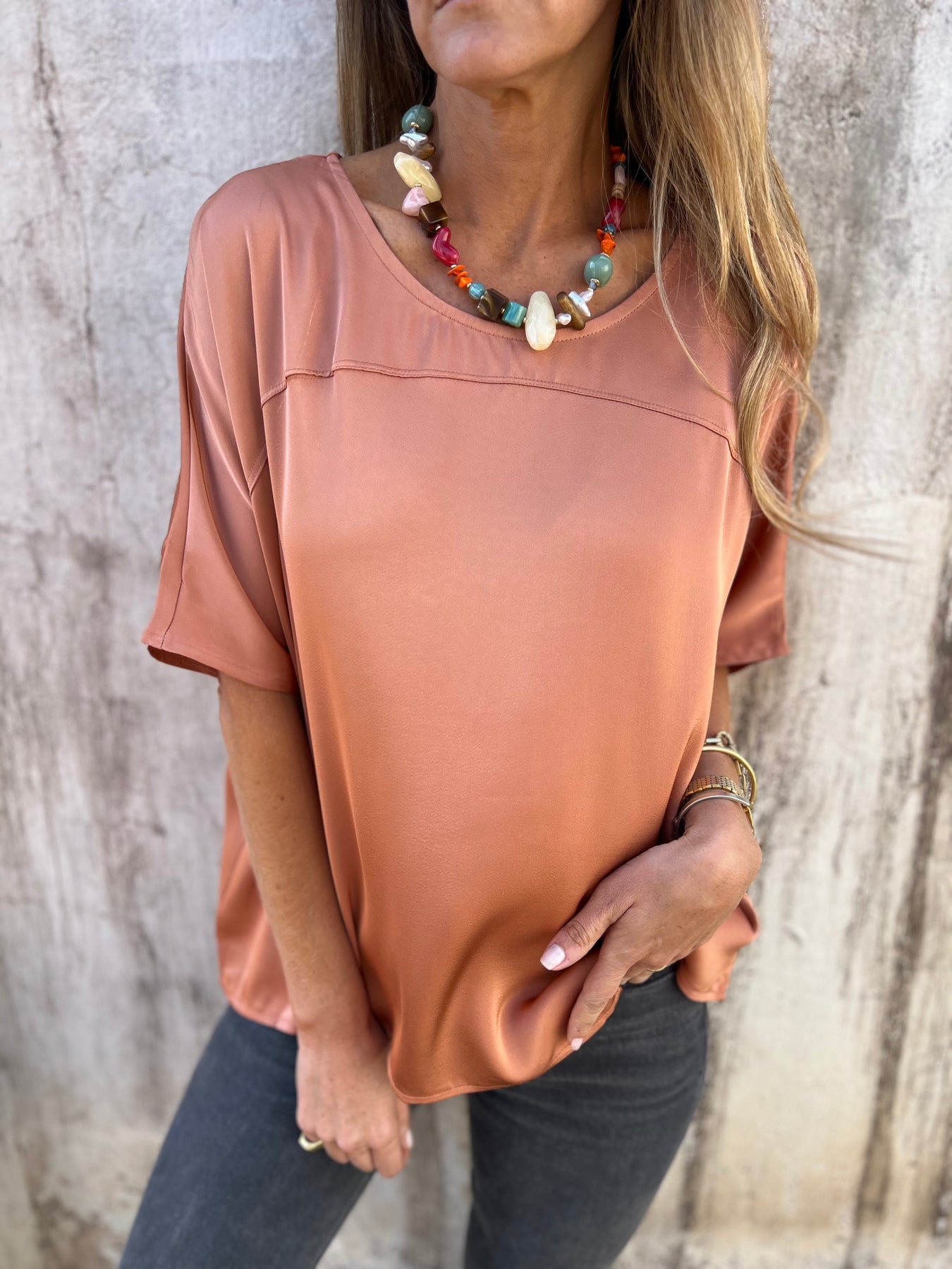 Blusa de raso grueso pesado y muy suave.