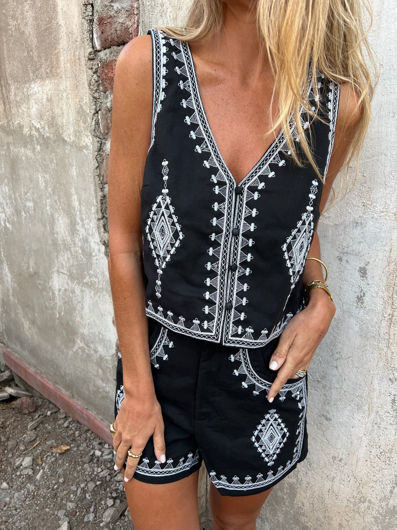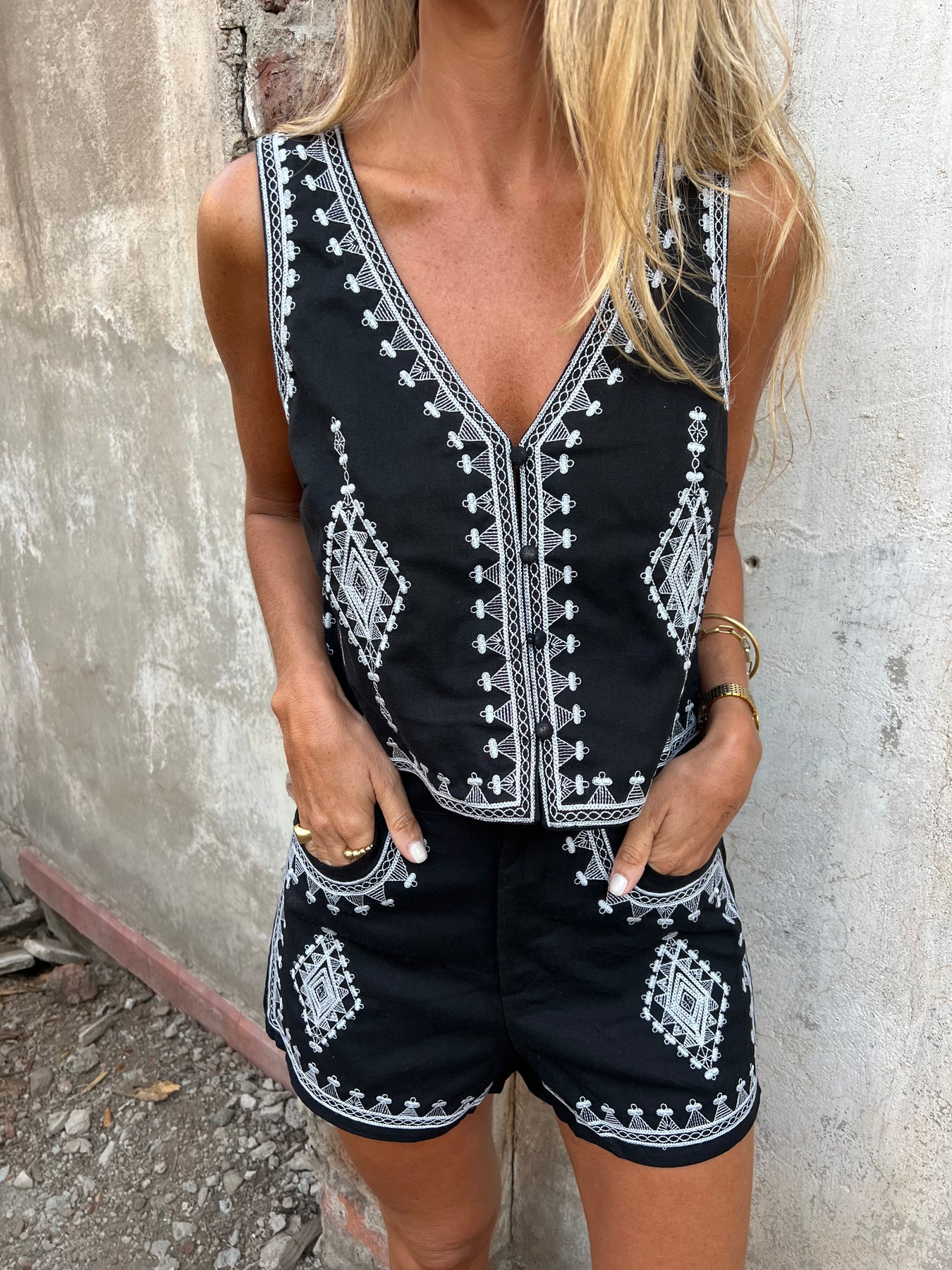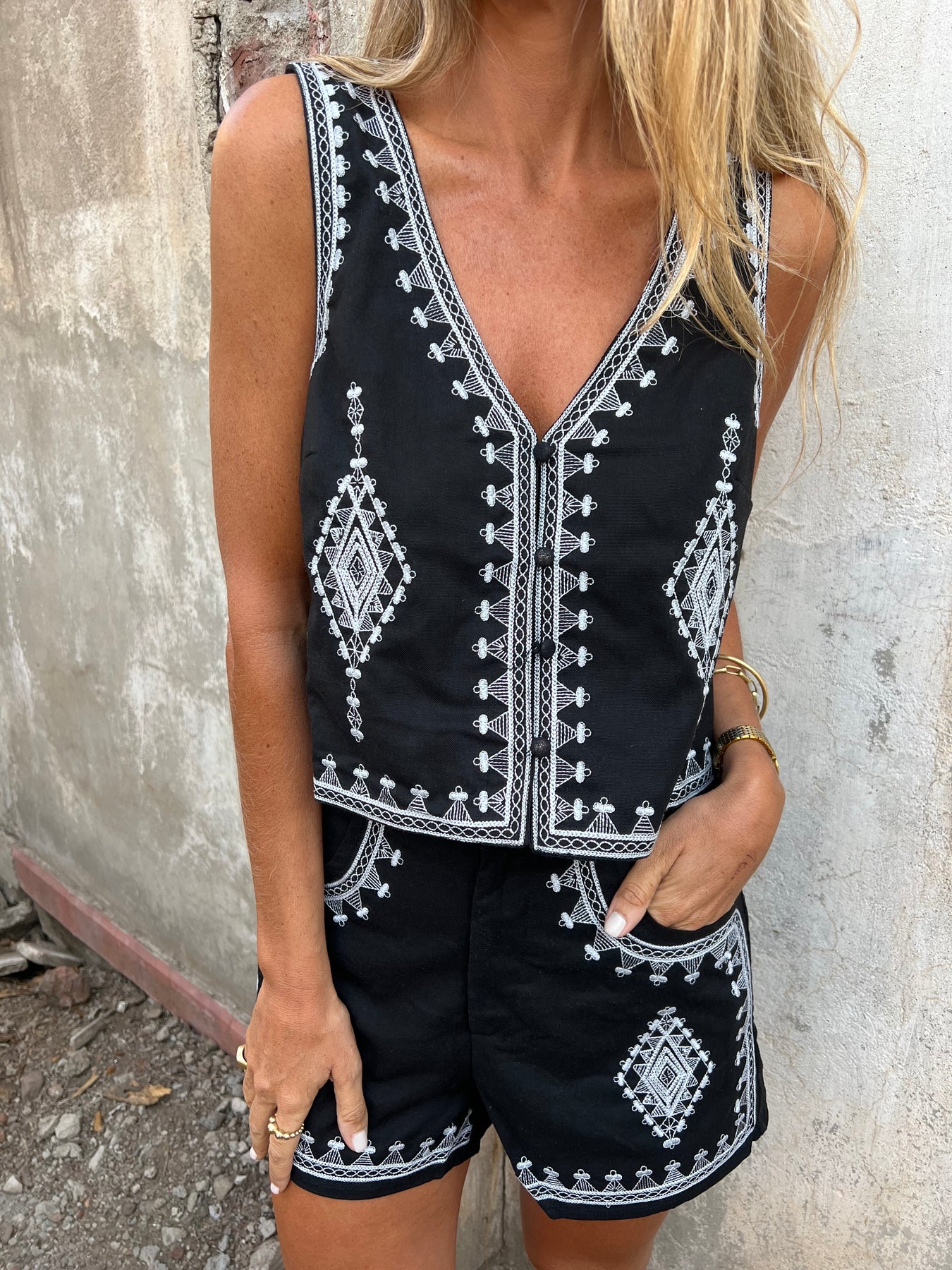 Chaqueta de linoto bordada con forro que no se transparenta nada