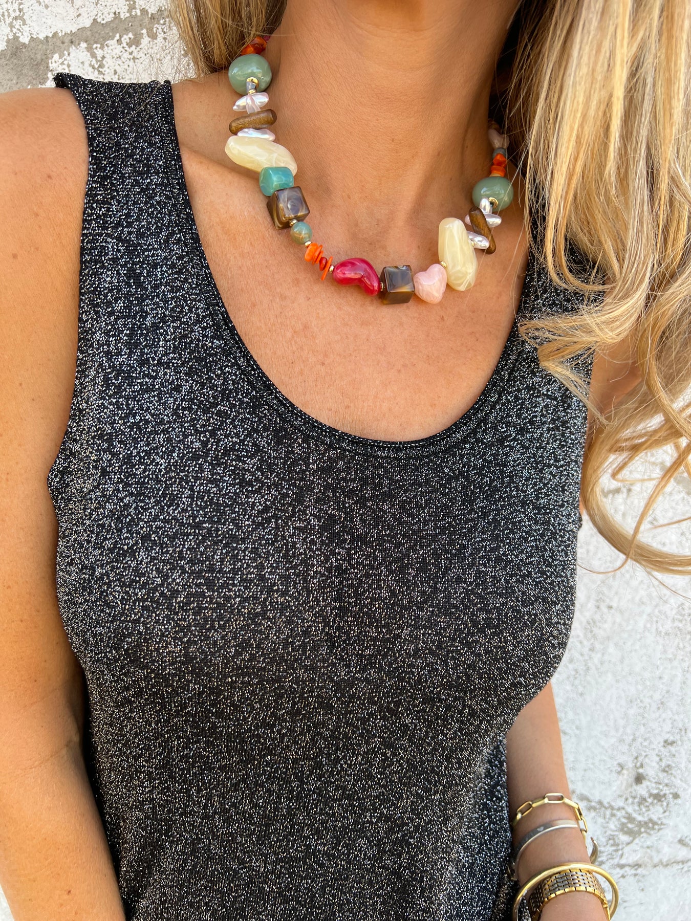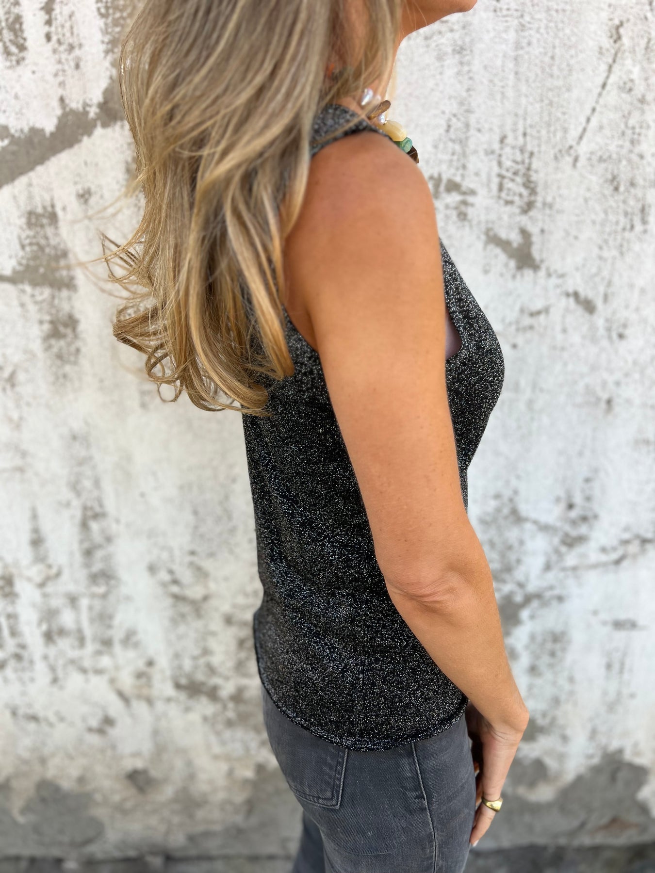 Musculosa hilo brillos negro