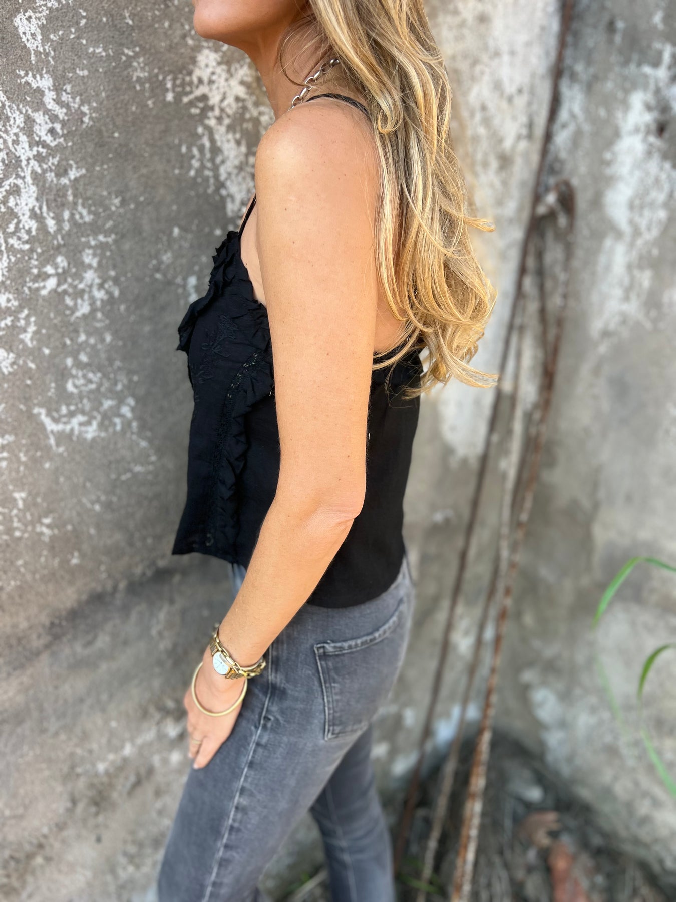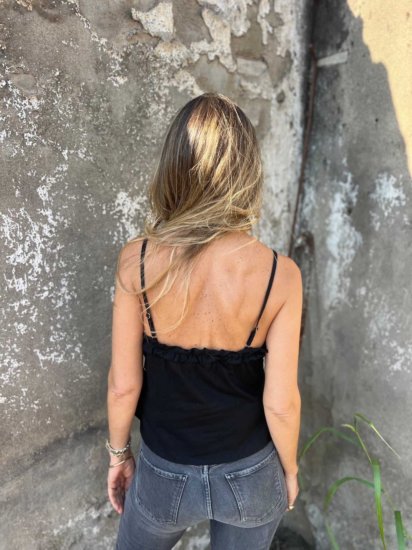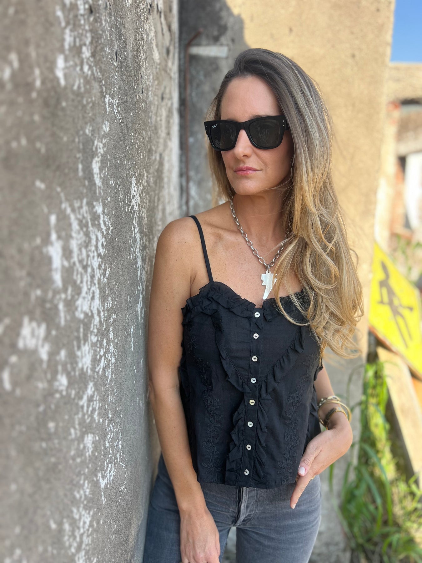 Polera de viscosa con bordados. Tiritas que ajustan el largo: