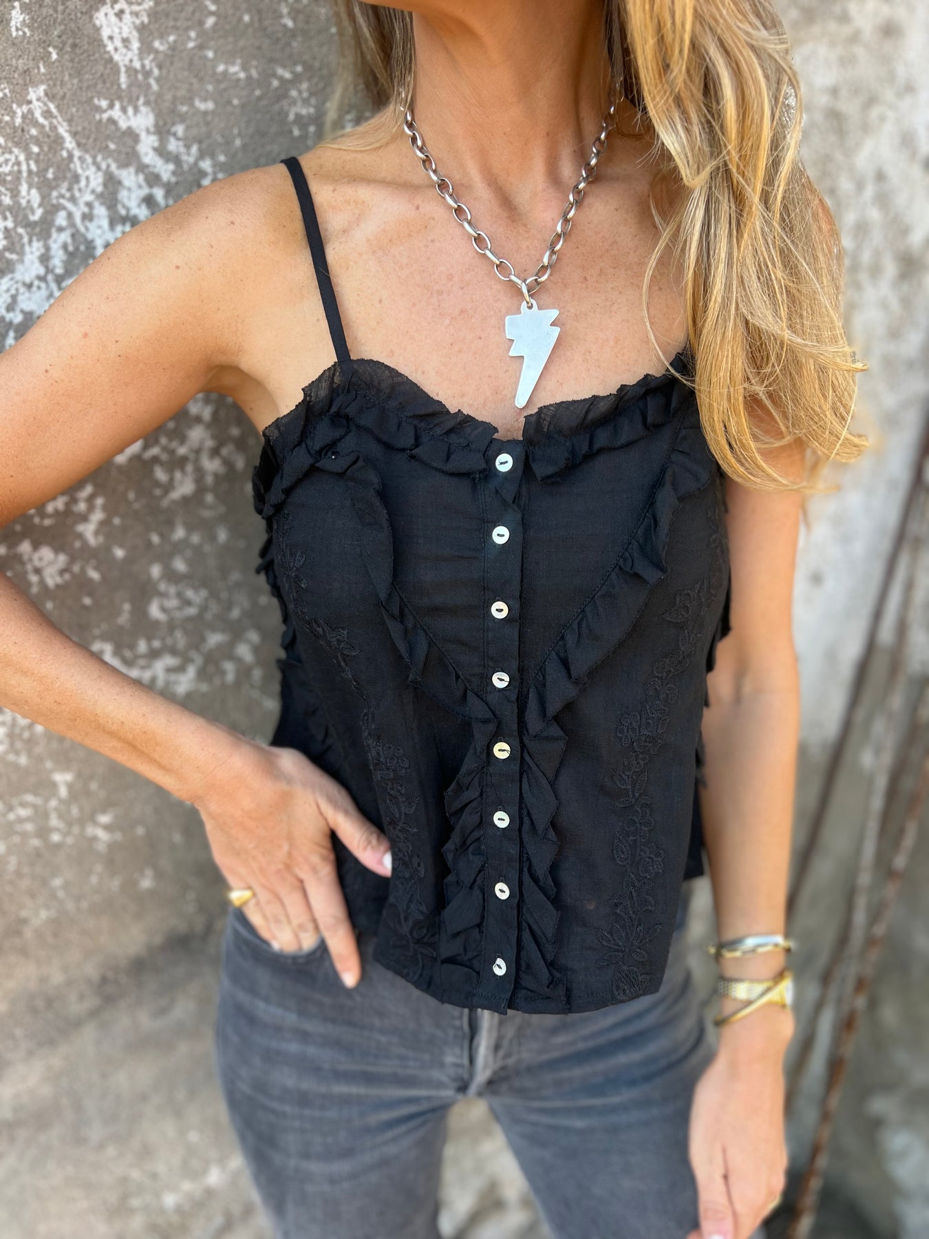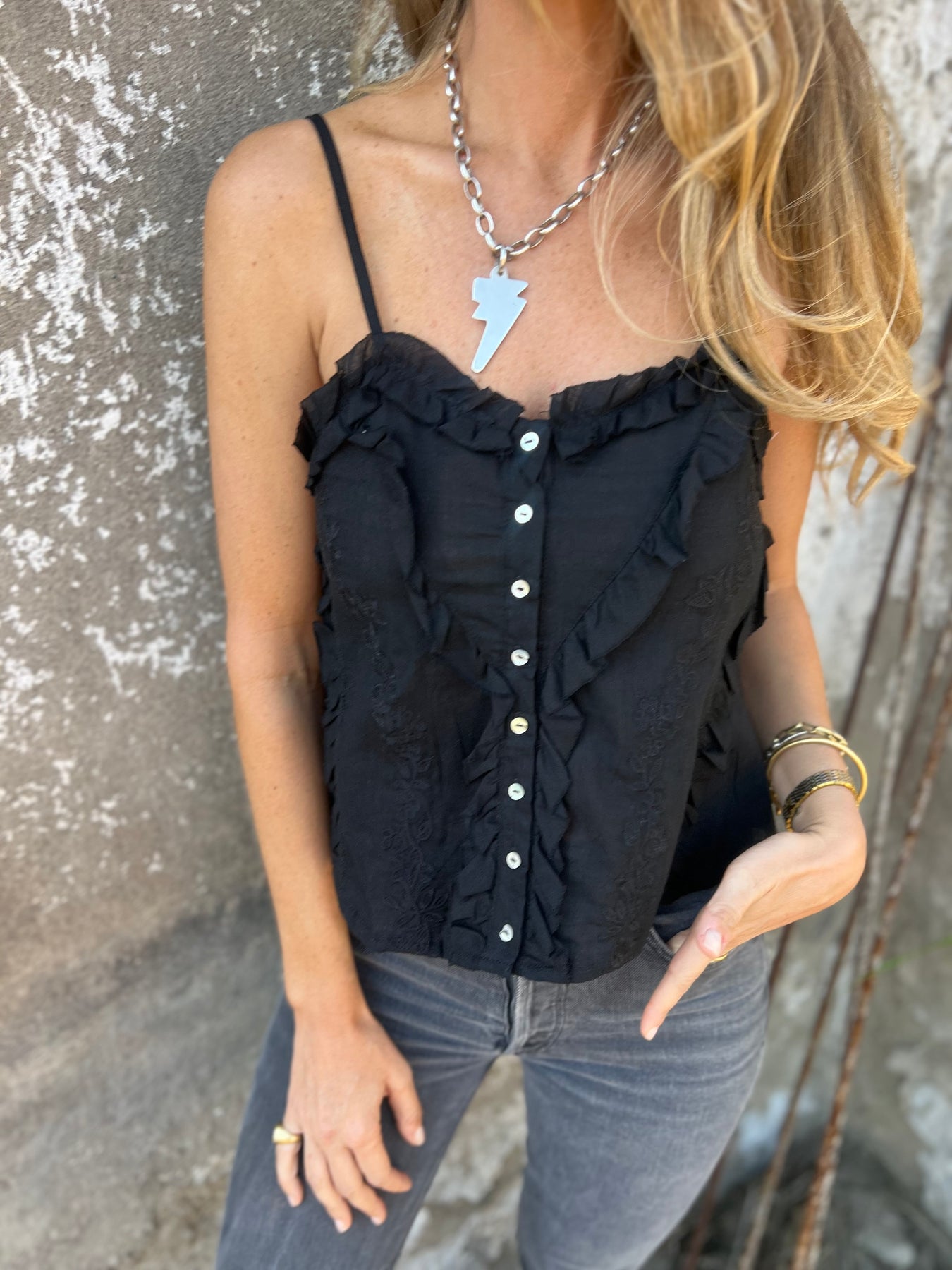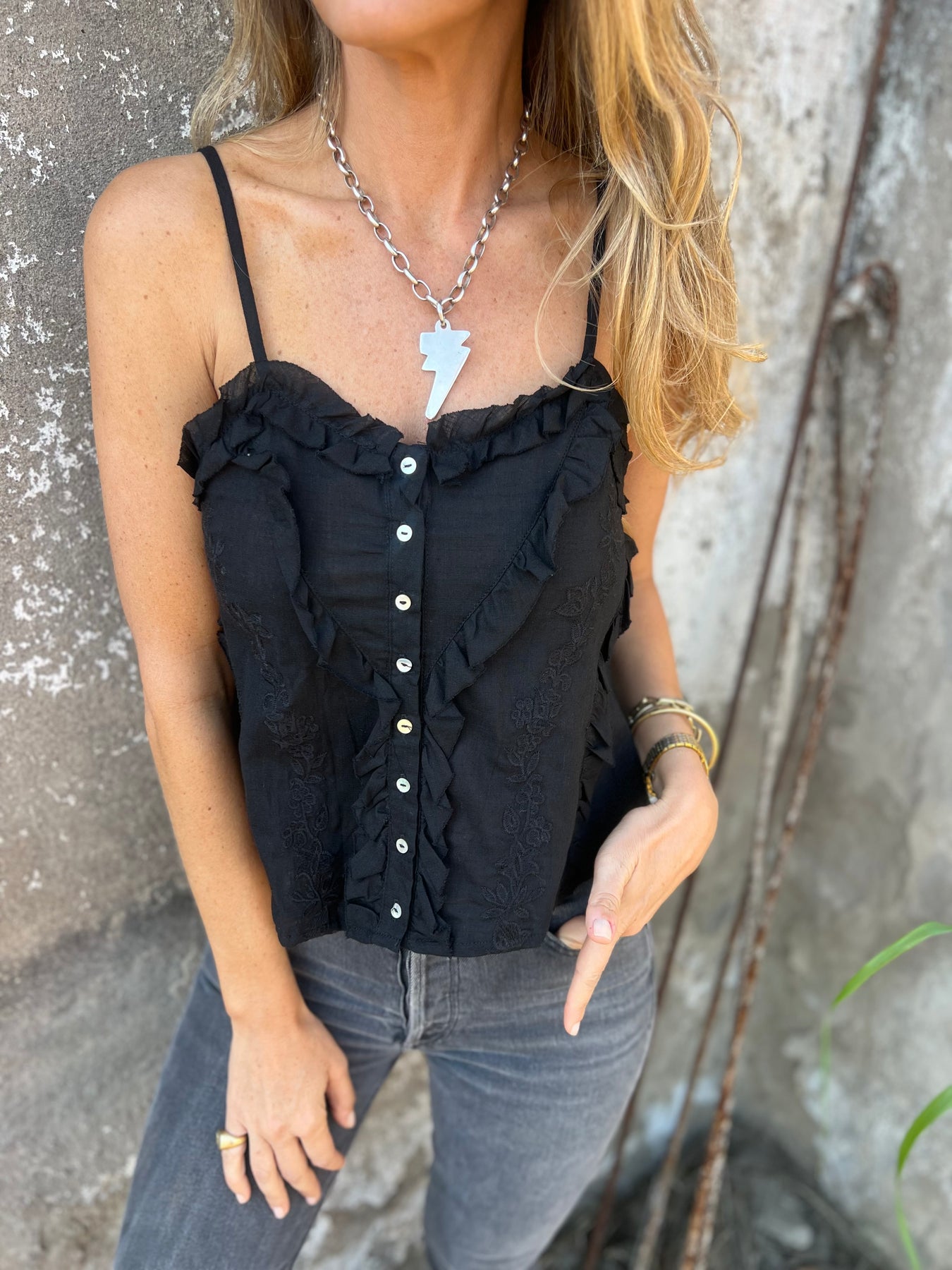 Polera de viscosa con bordados. Tiritas que ajustan el largo:
