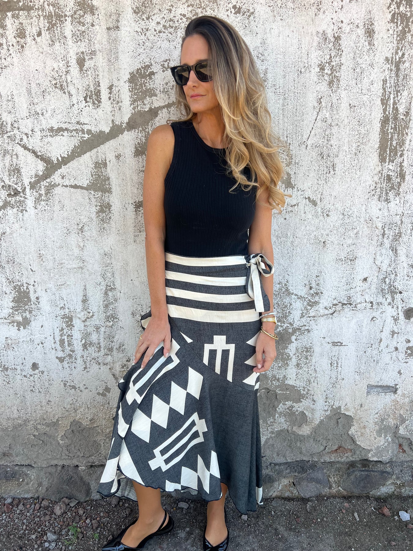 Pollera pantalón de tencel liviano. Tiene ajuste de cintura para todas las tallas