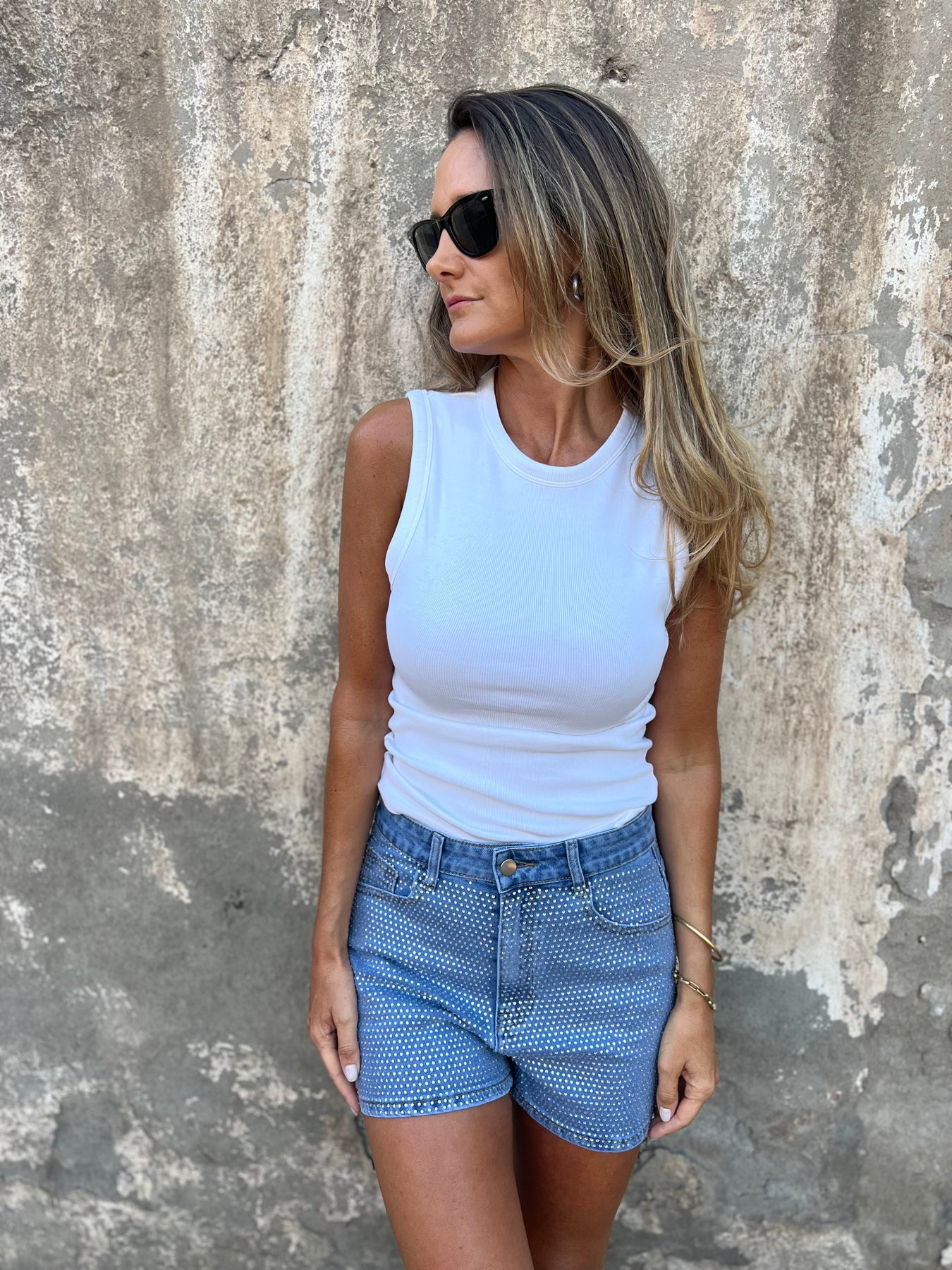 Short de bluejean elasticado con cristales