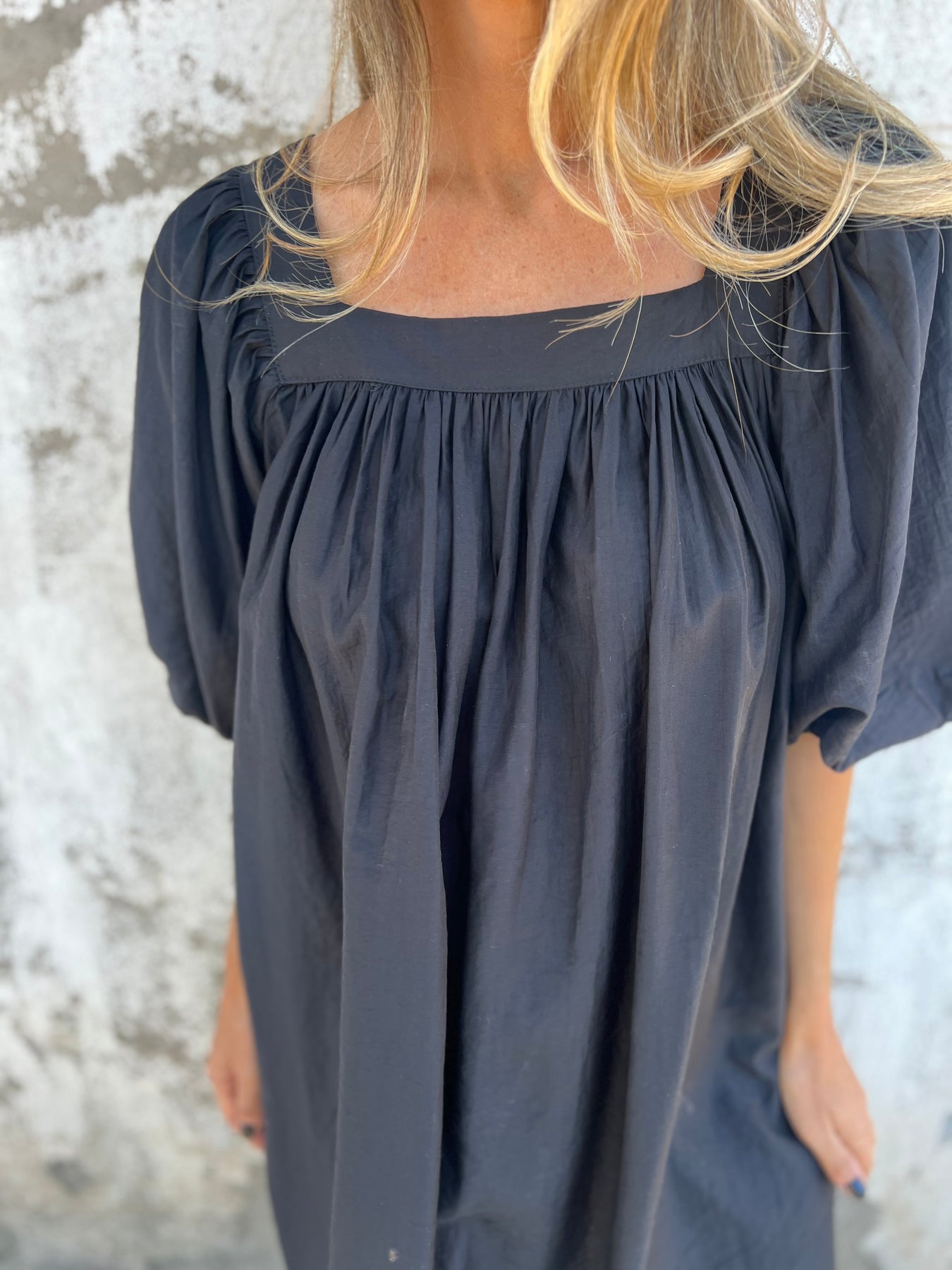 Vestido de popelina con forro y manga globo.
