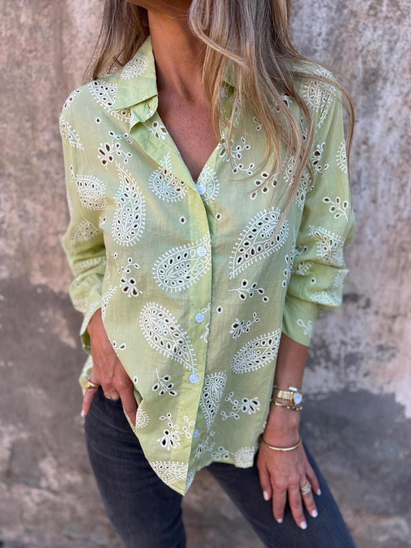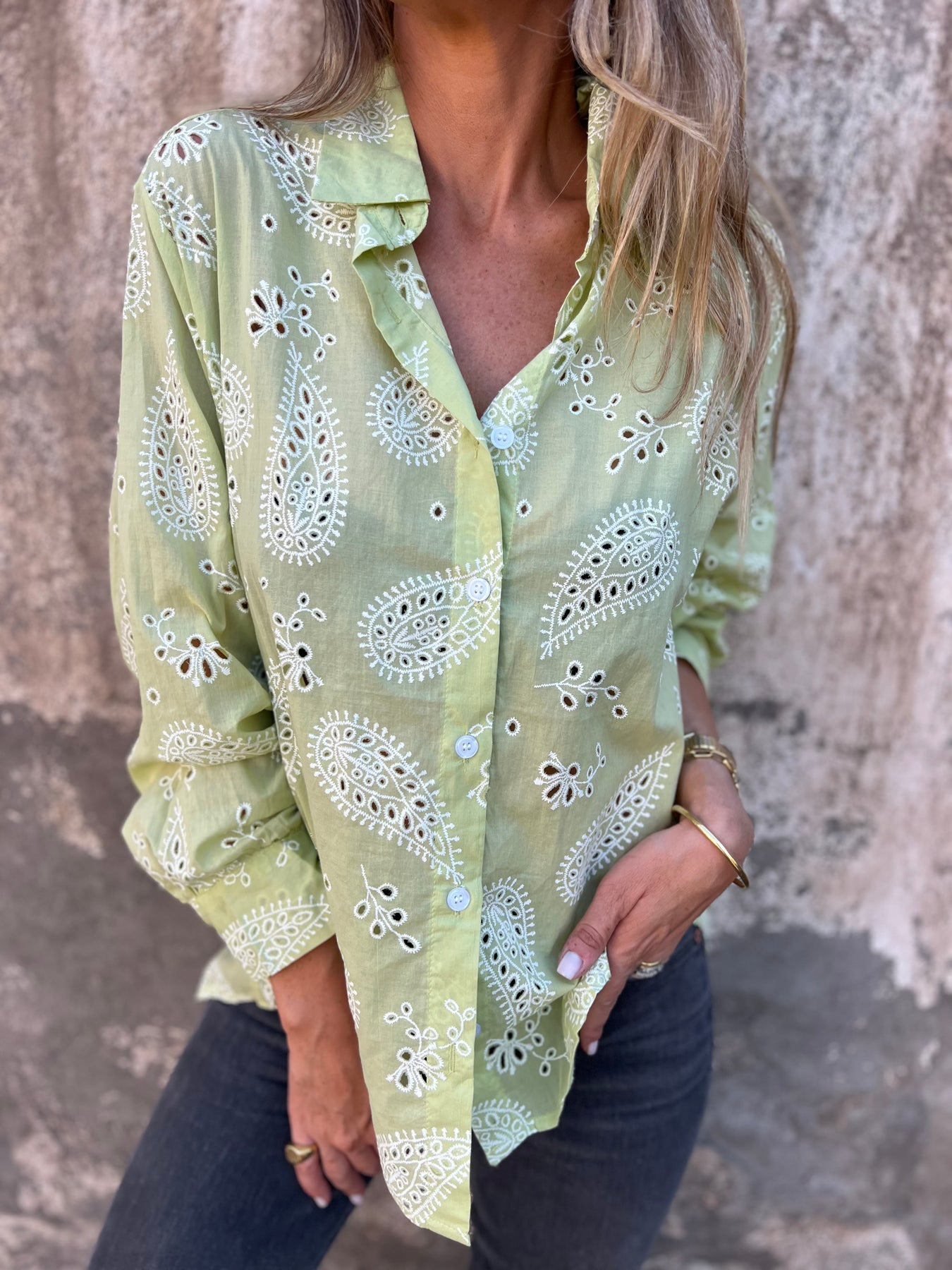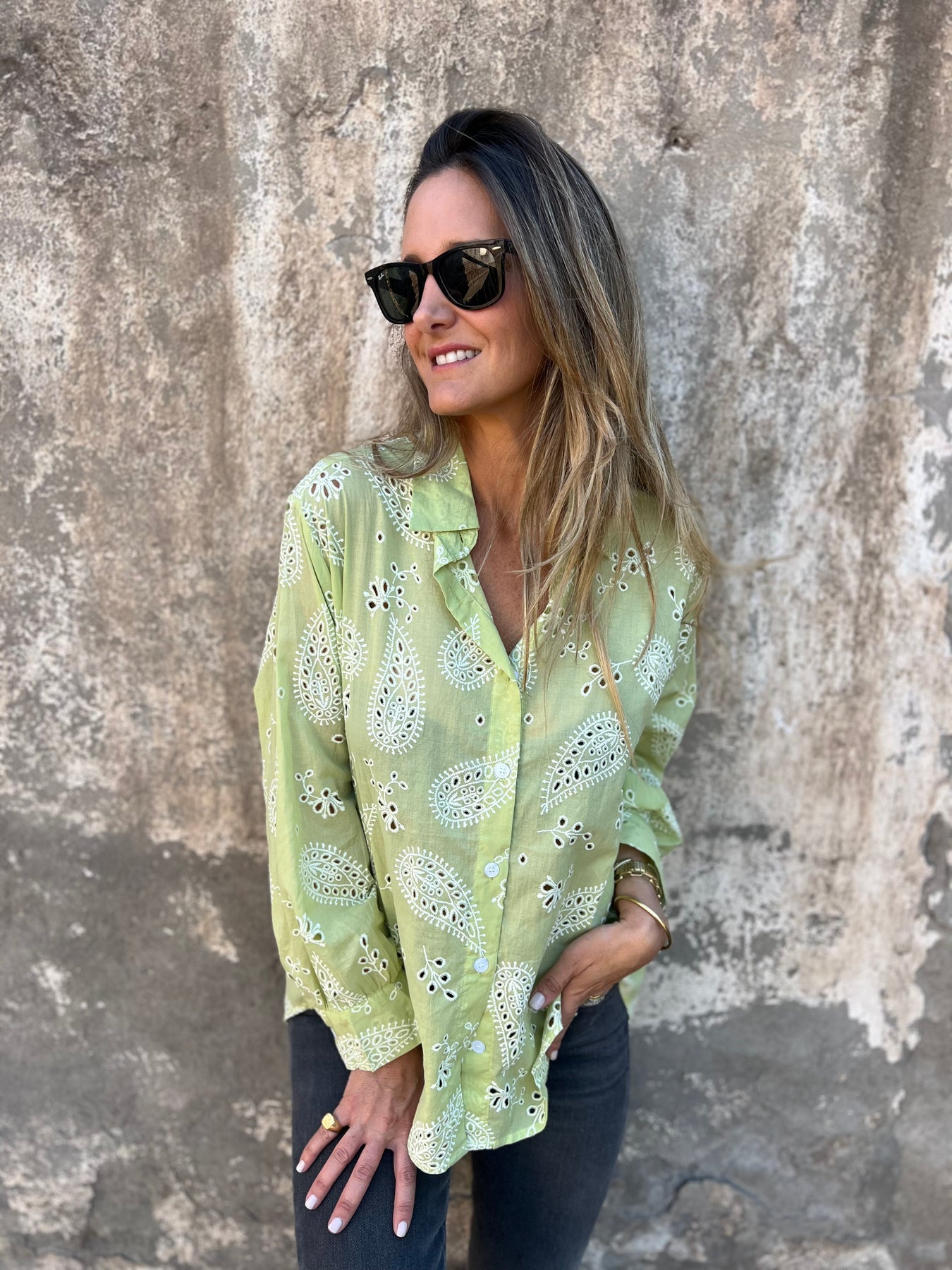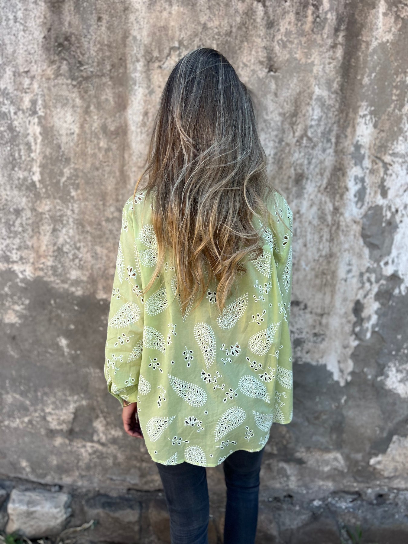Blusón de viscosa con detalle de broderie
