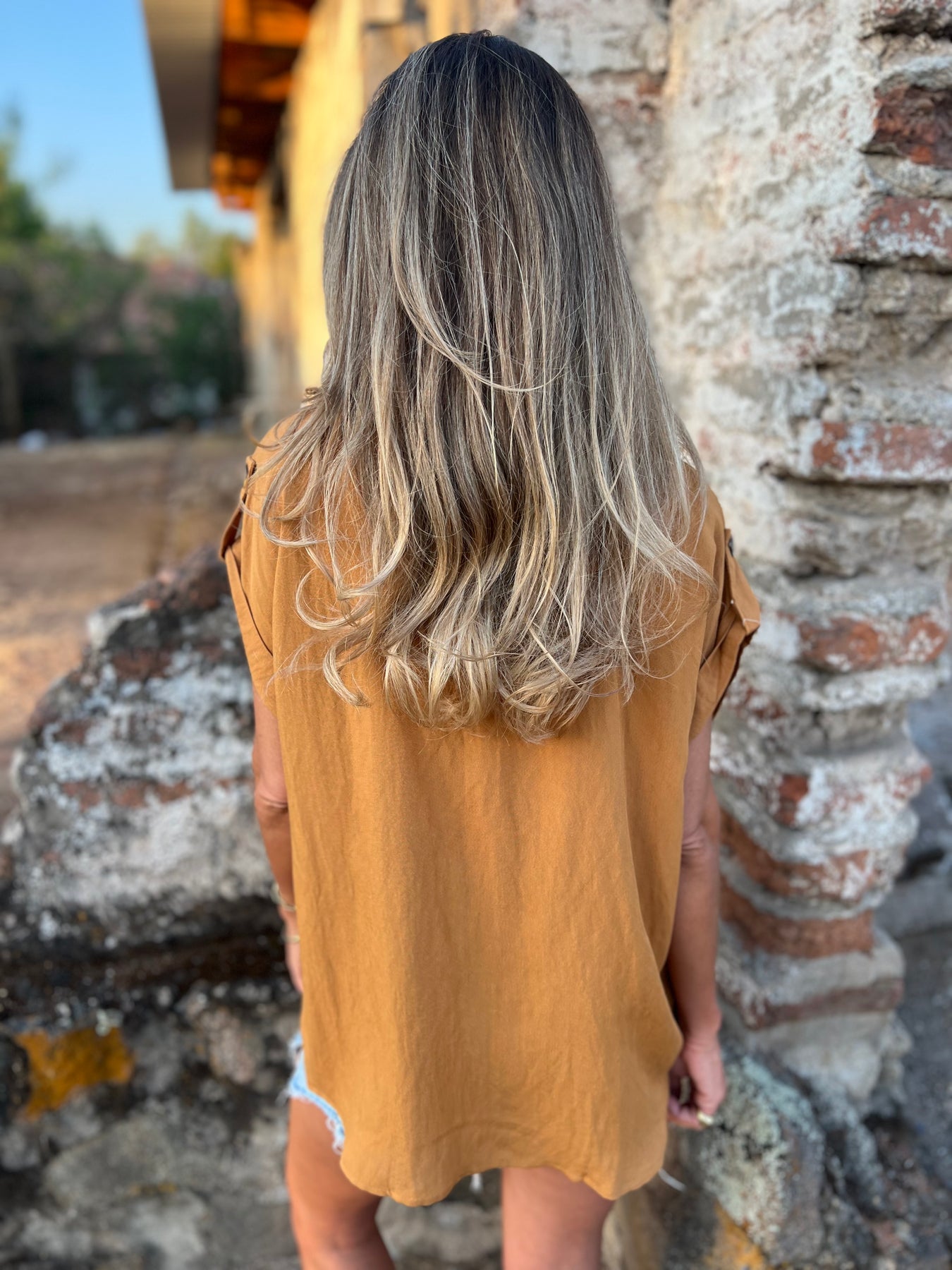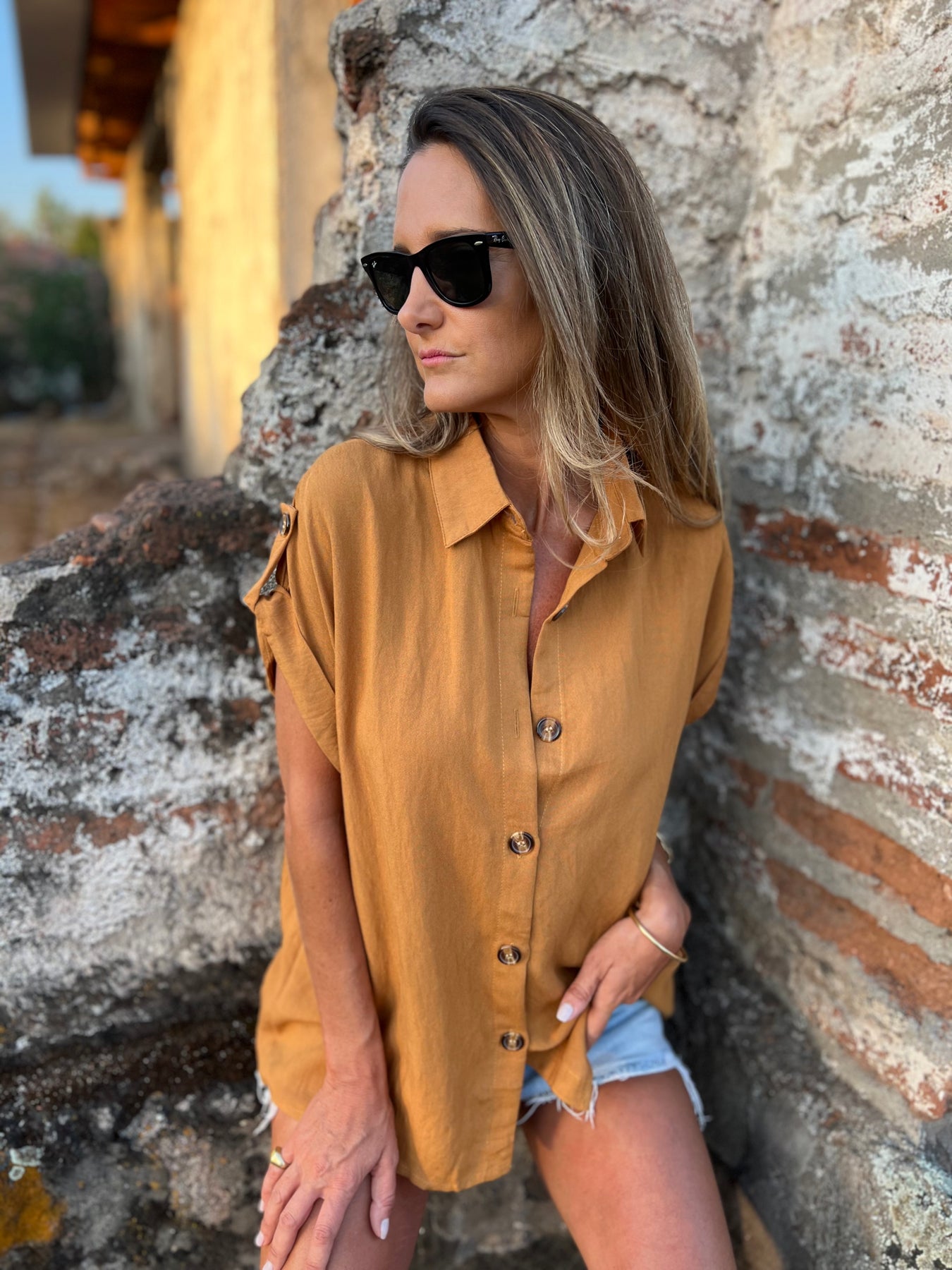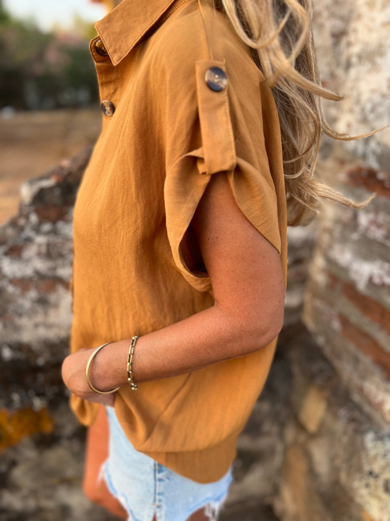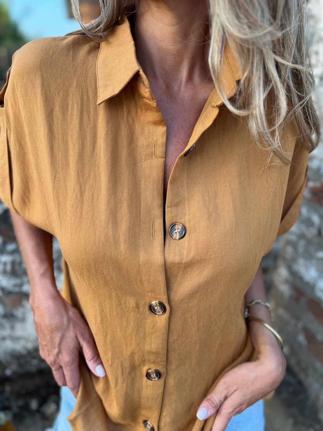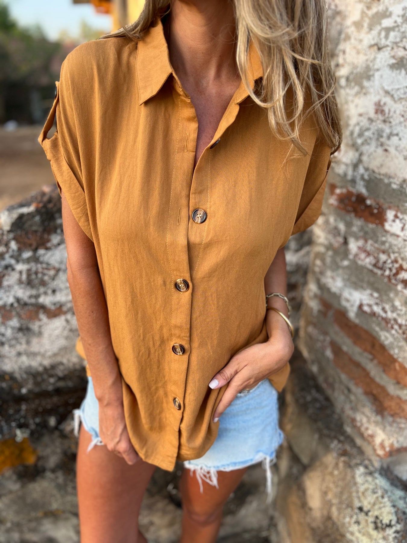 Blusa de viscosa con botones de madera.