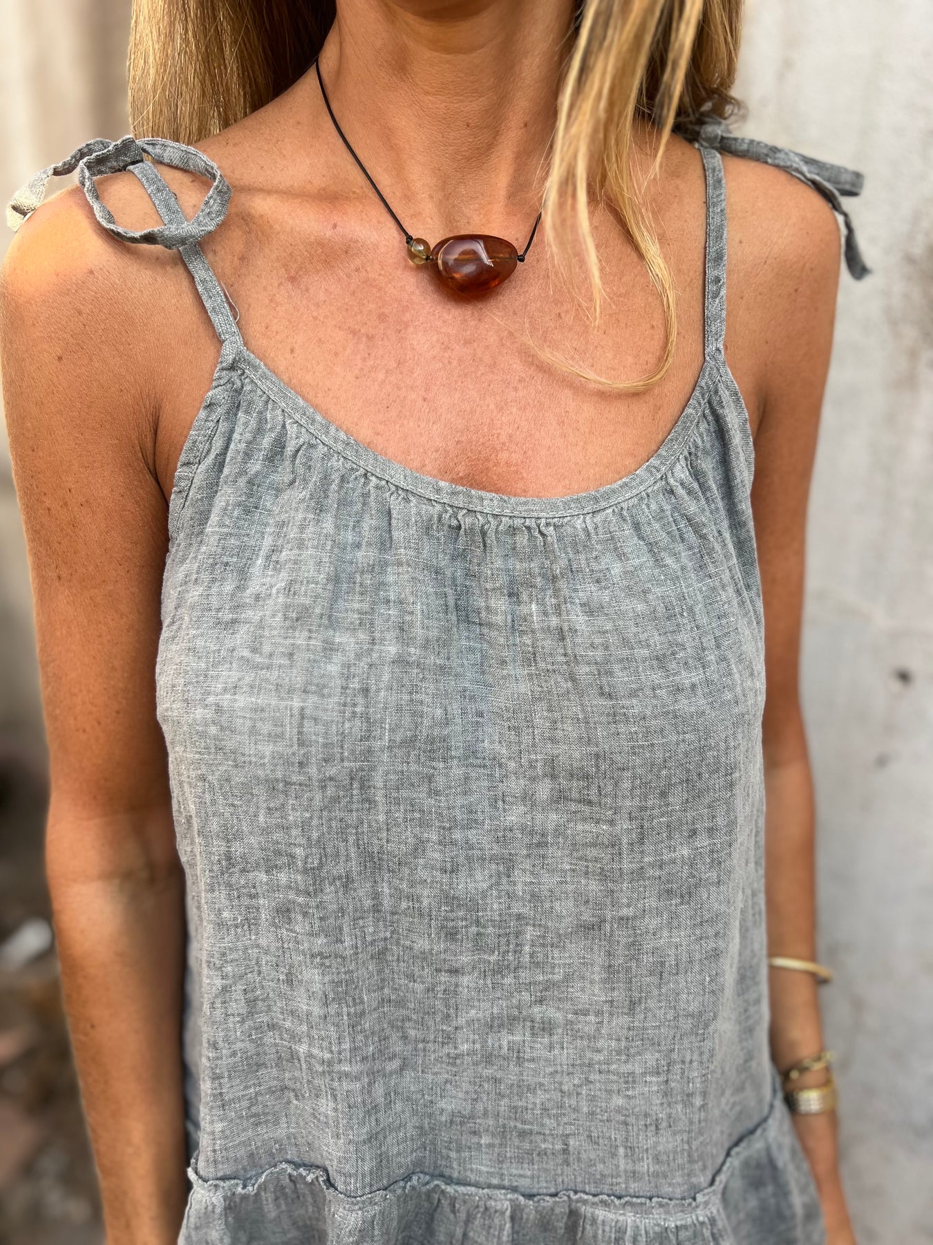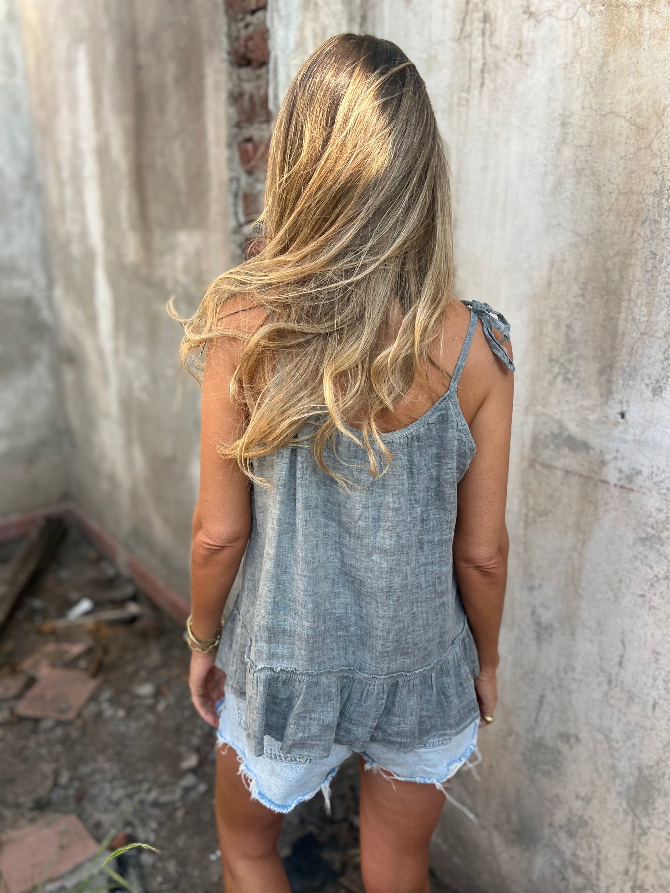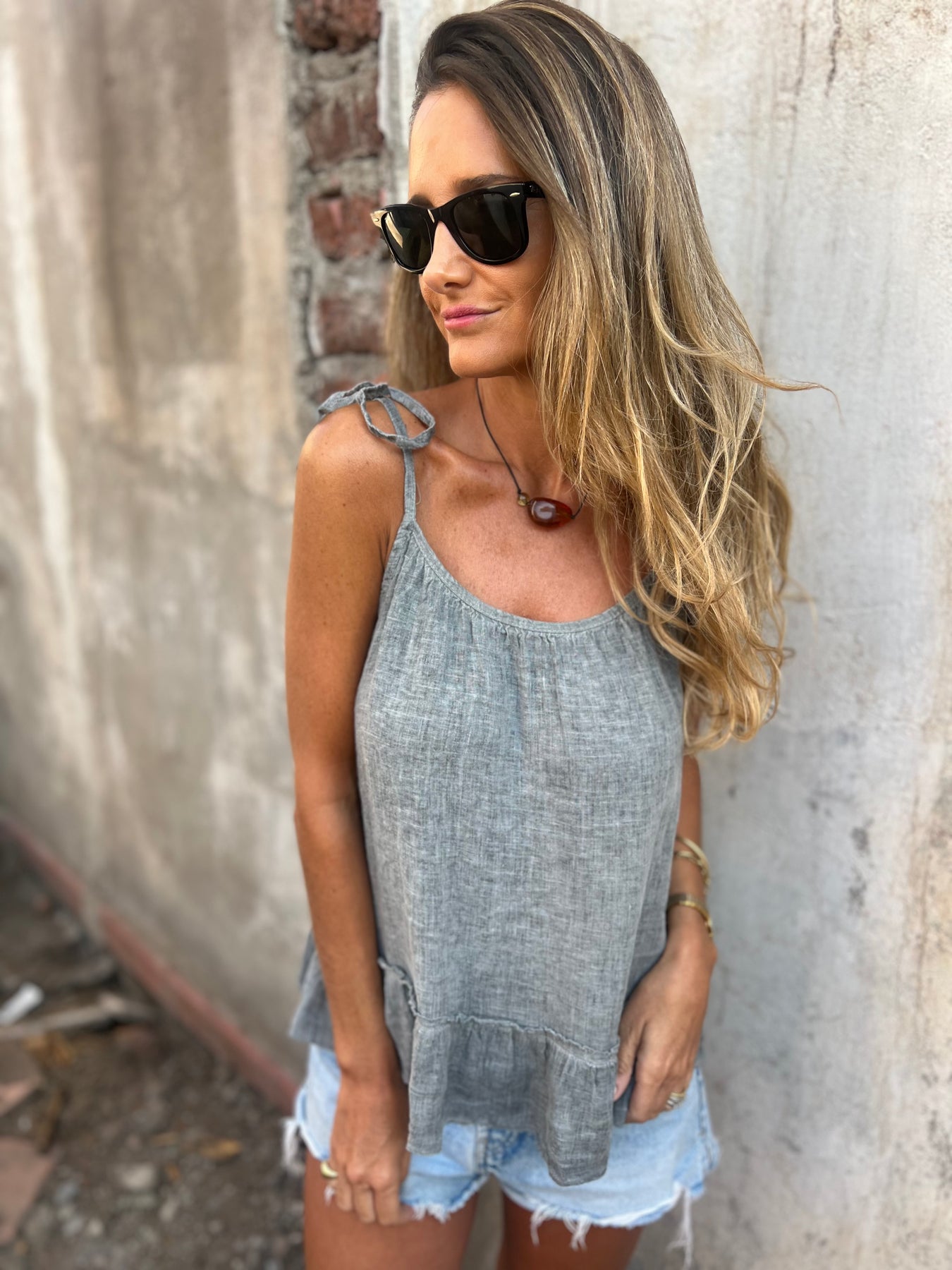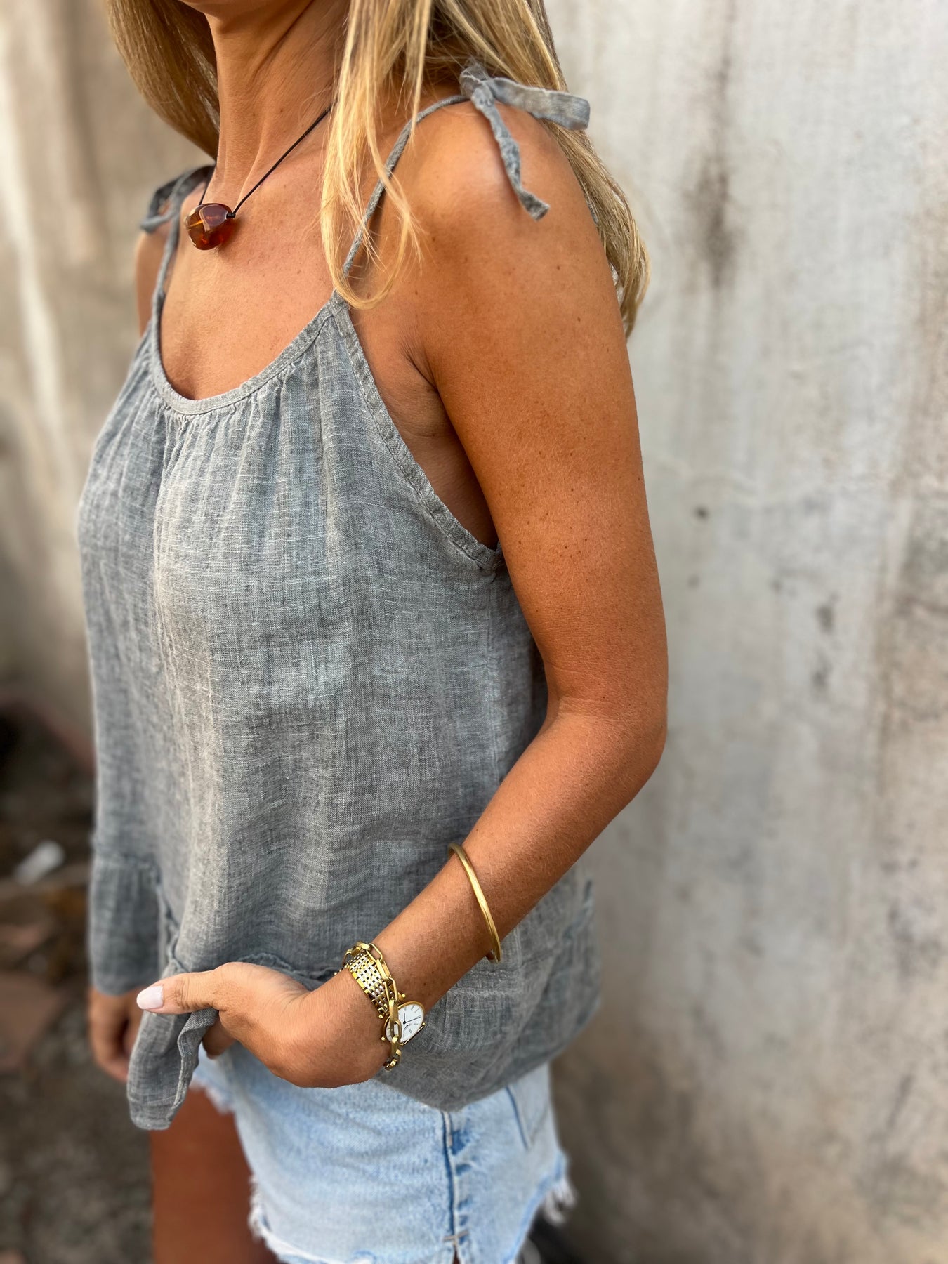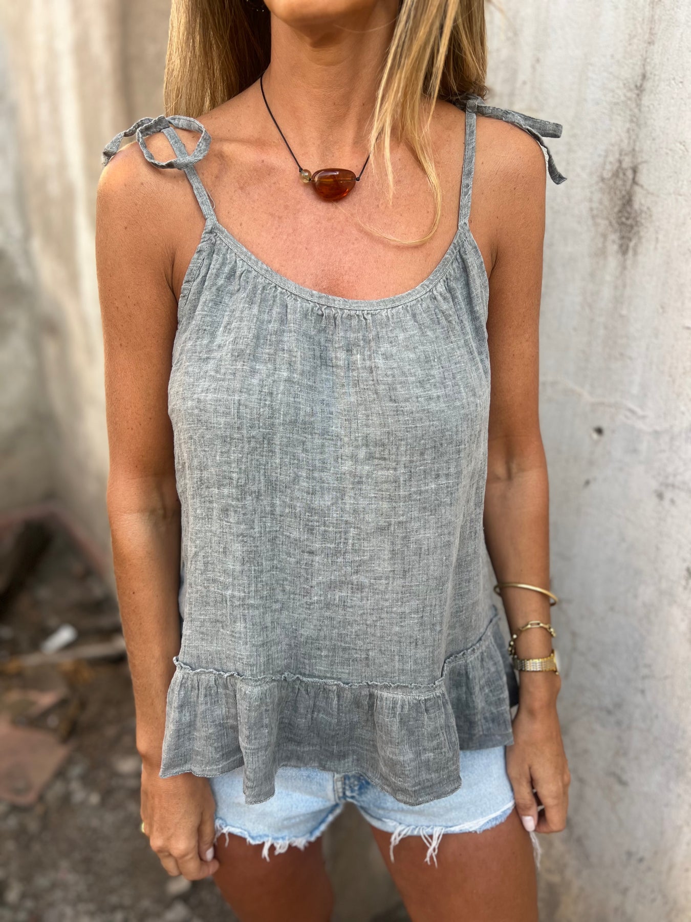 Blusa de lino italiano con tiritas que se amarran y ajustan