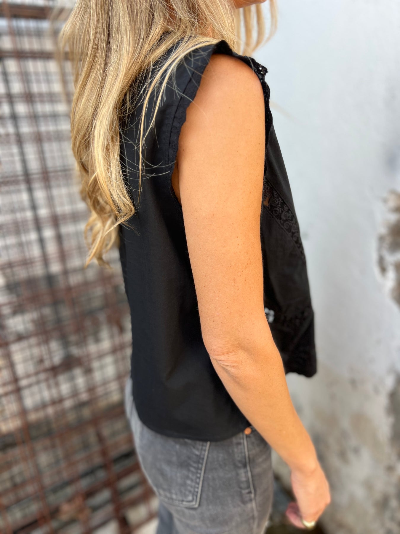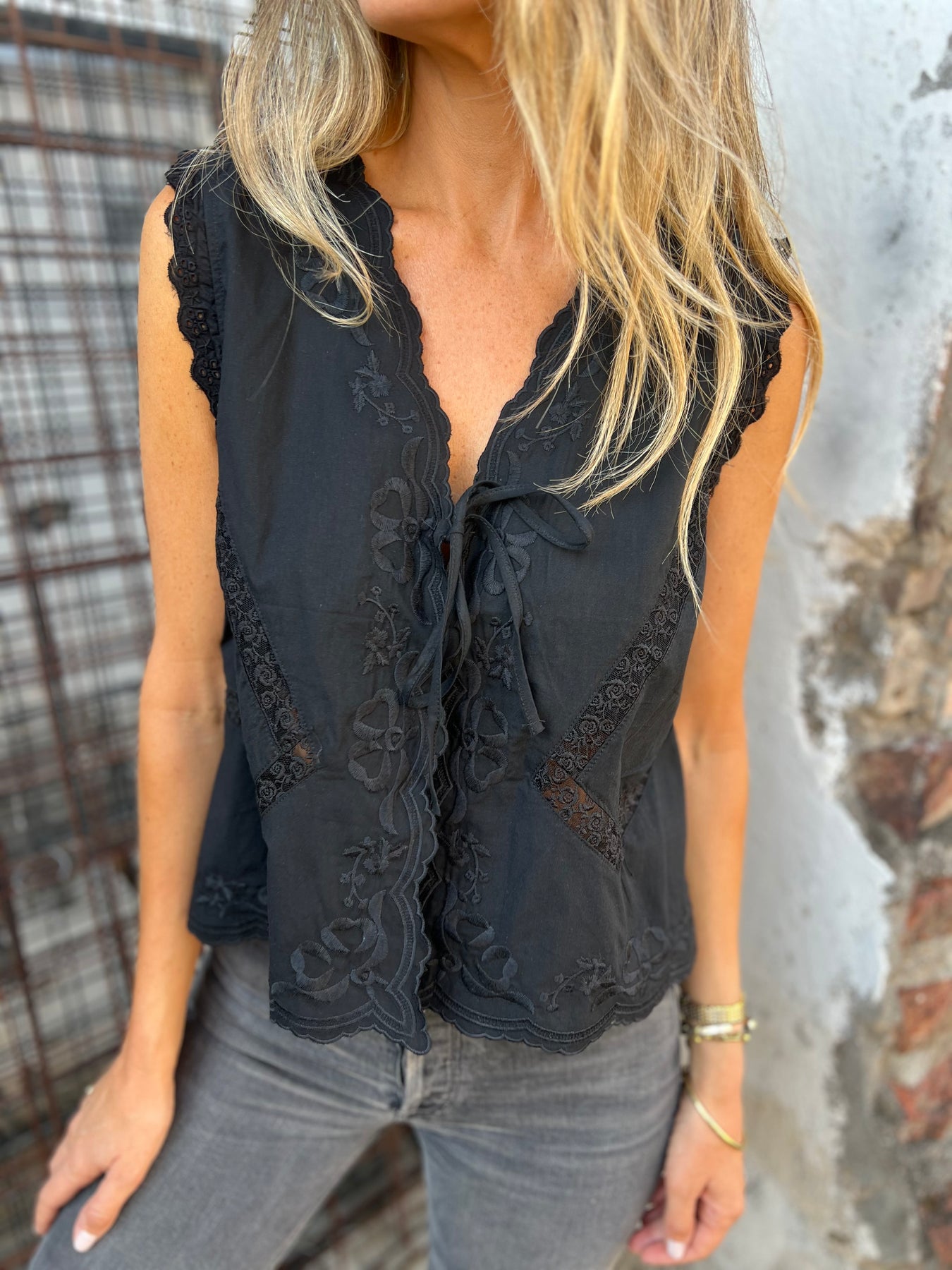 Bolero de algodón con detalles de bordados con amarras