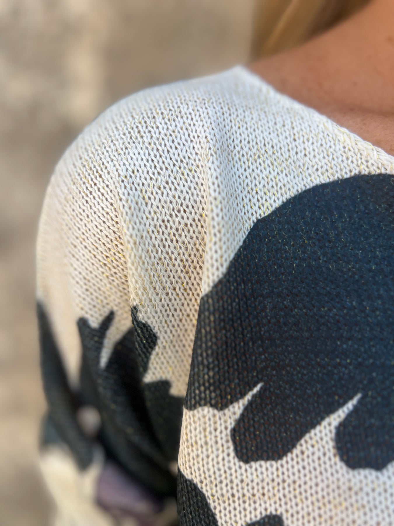 Chaleco de lana delgada de algodón muy suave que no pica nada. Detalle de brillos muy sutiles