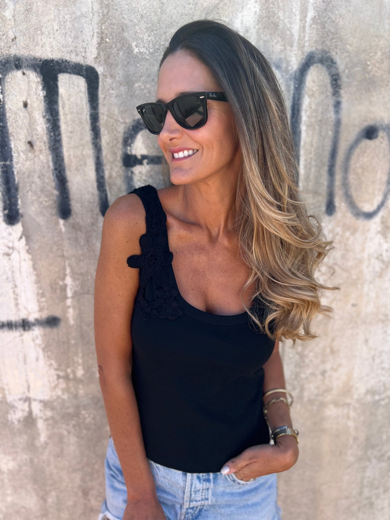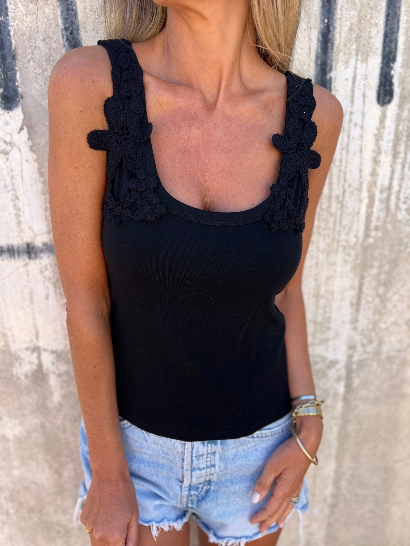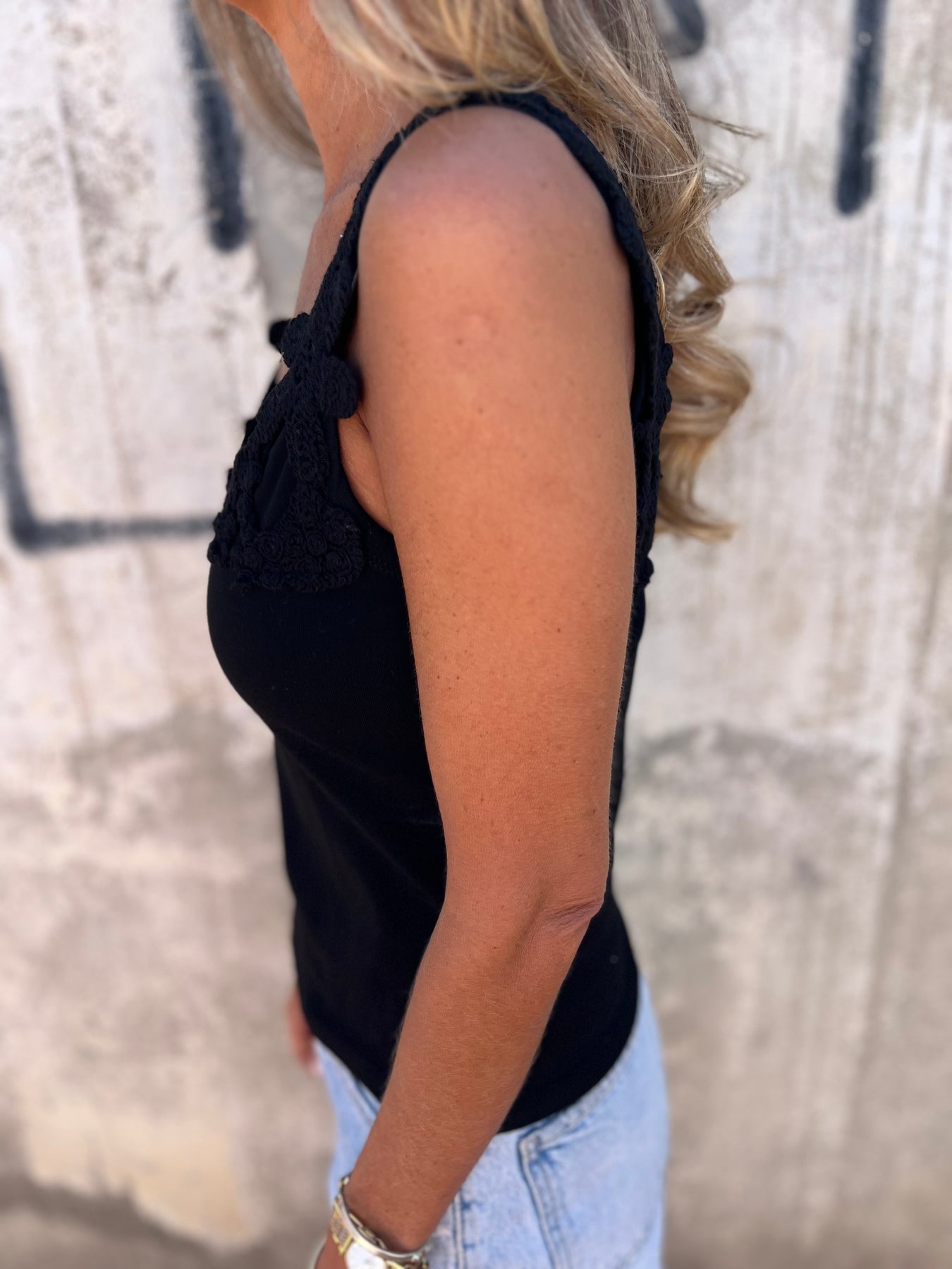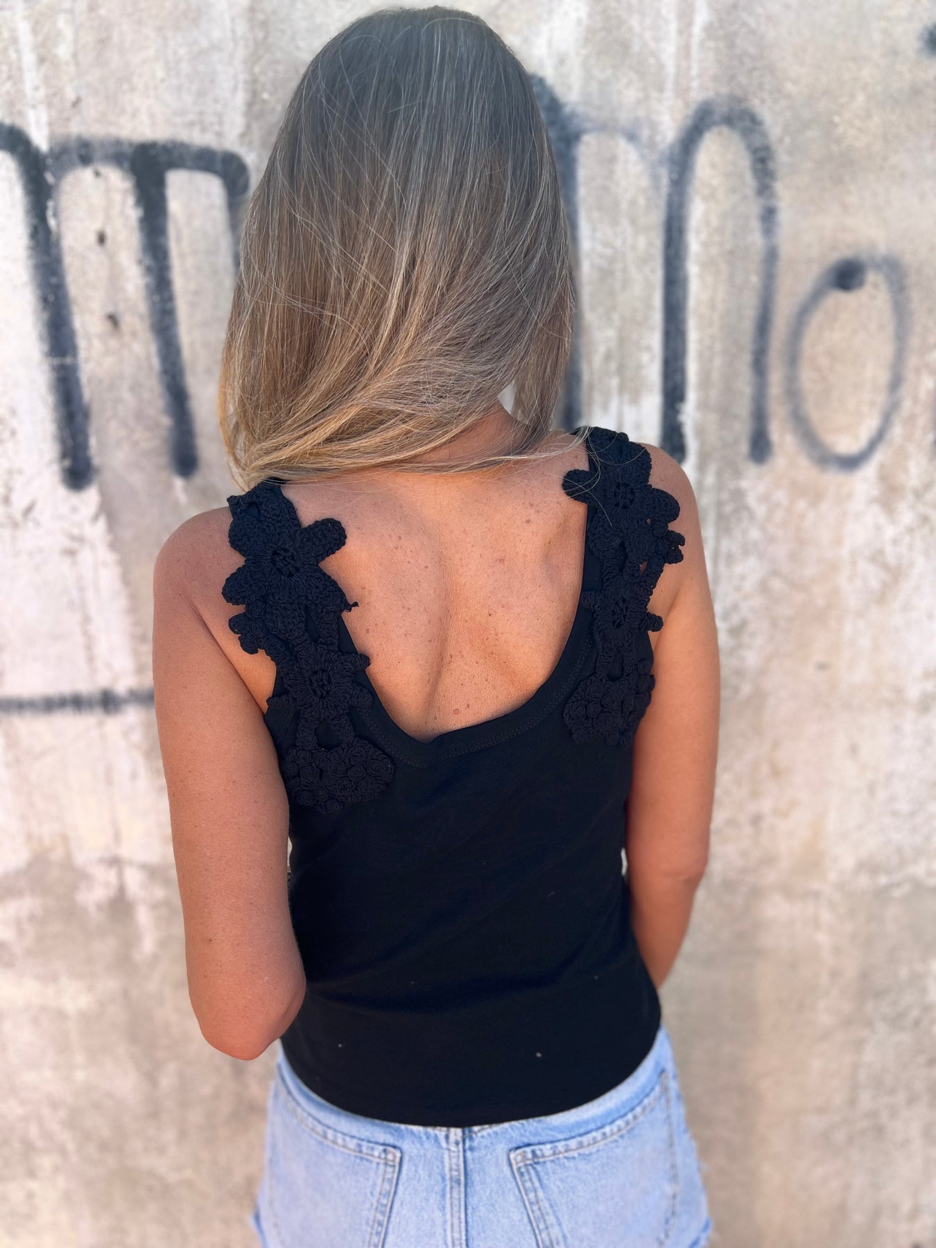 Polera de algodón elasticado con detalles de crochet