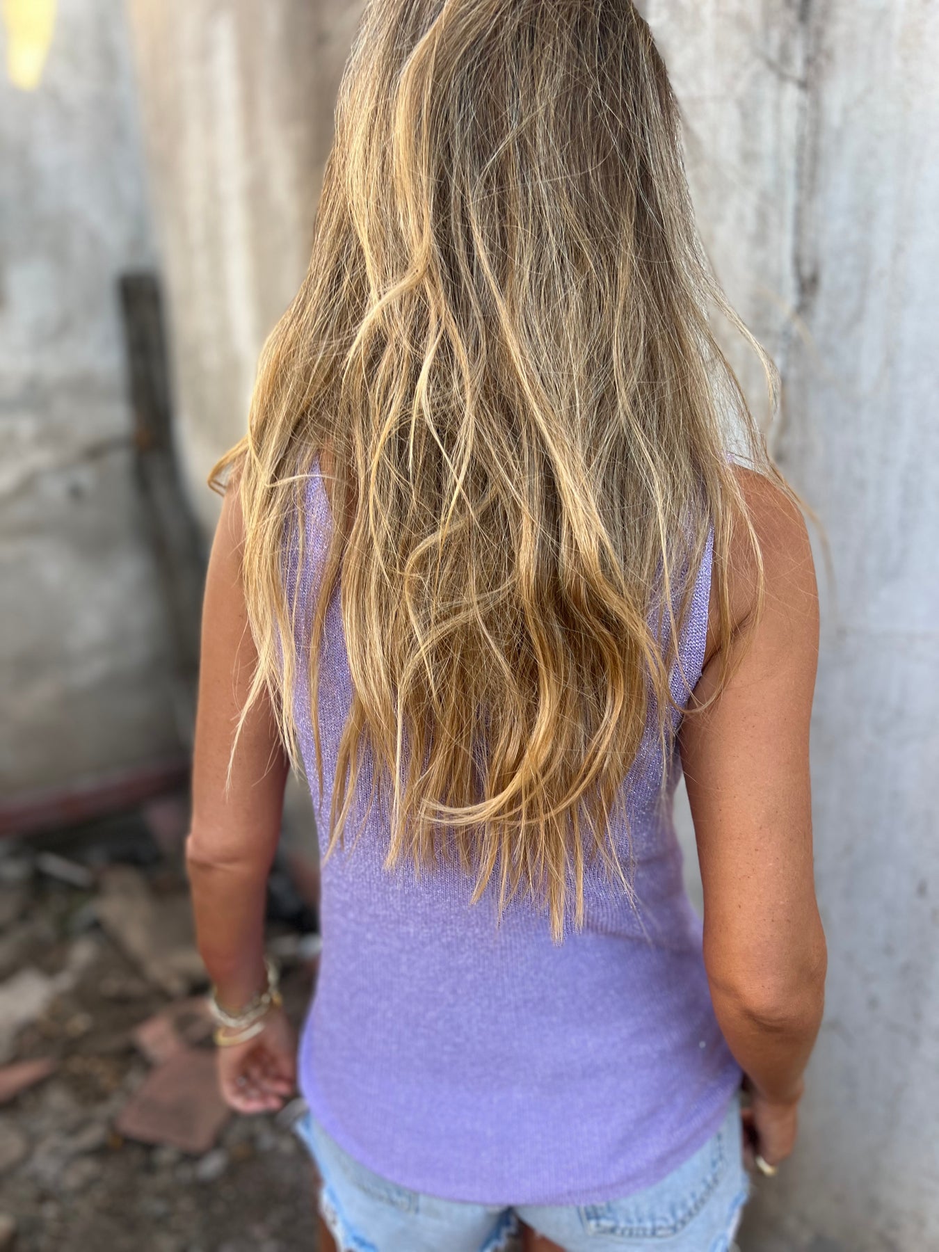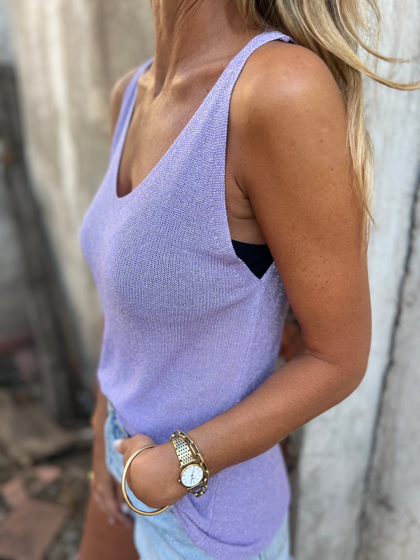 Polera de hilo con lurex metalizado.