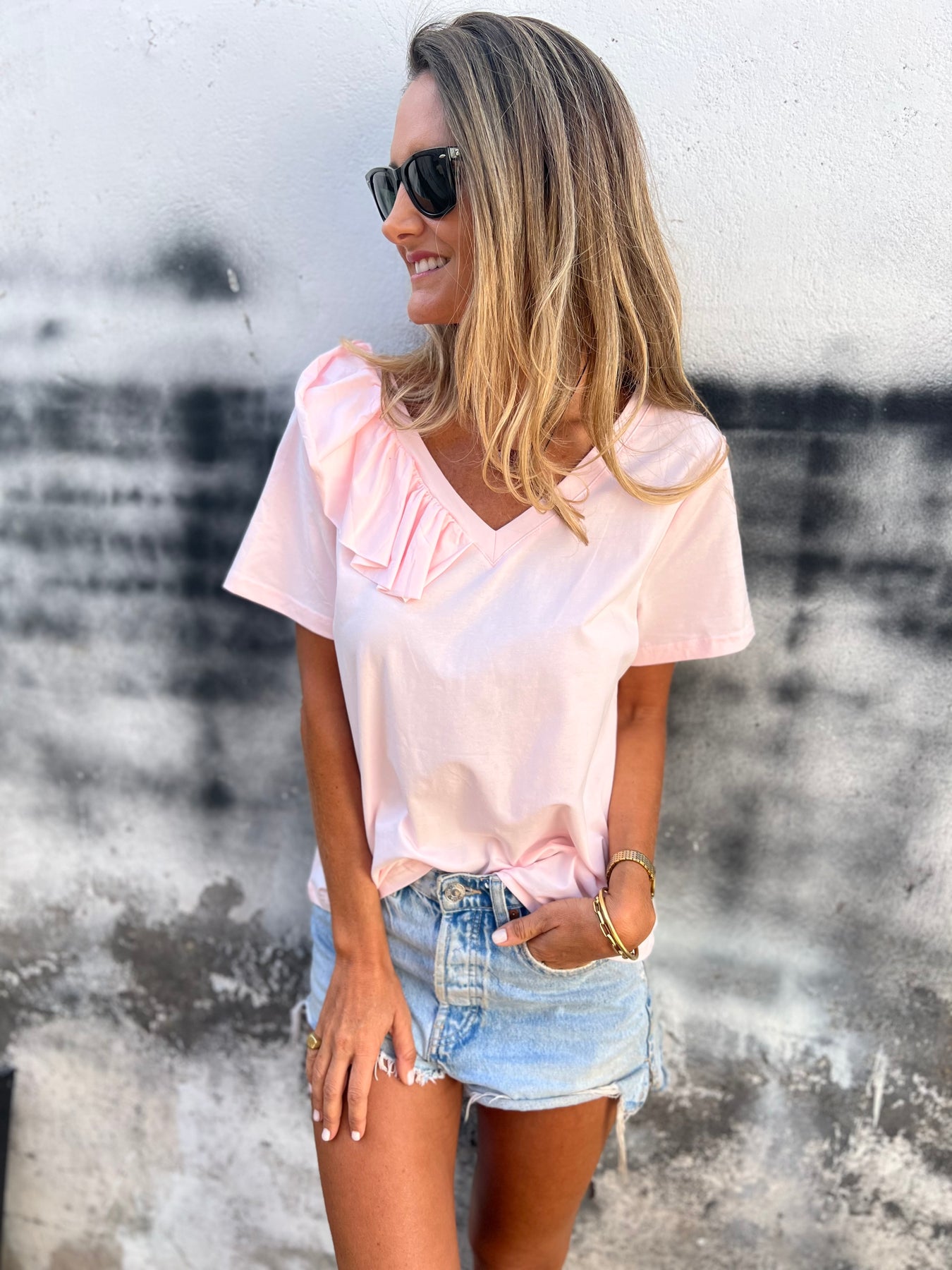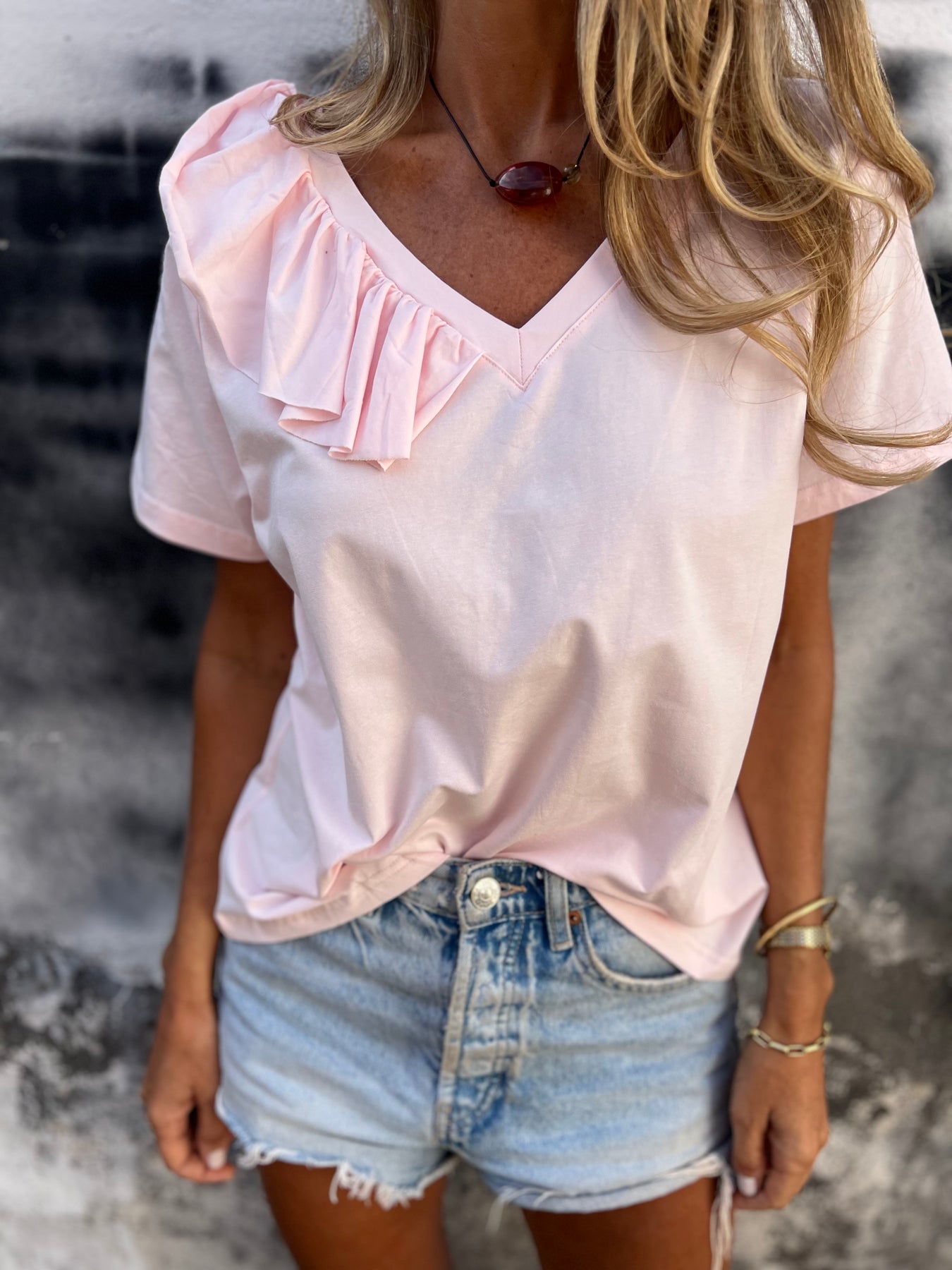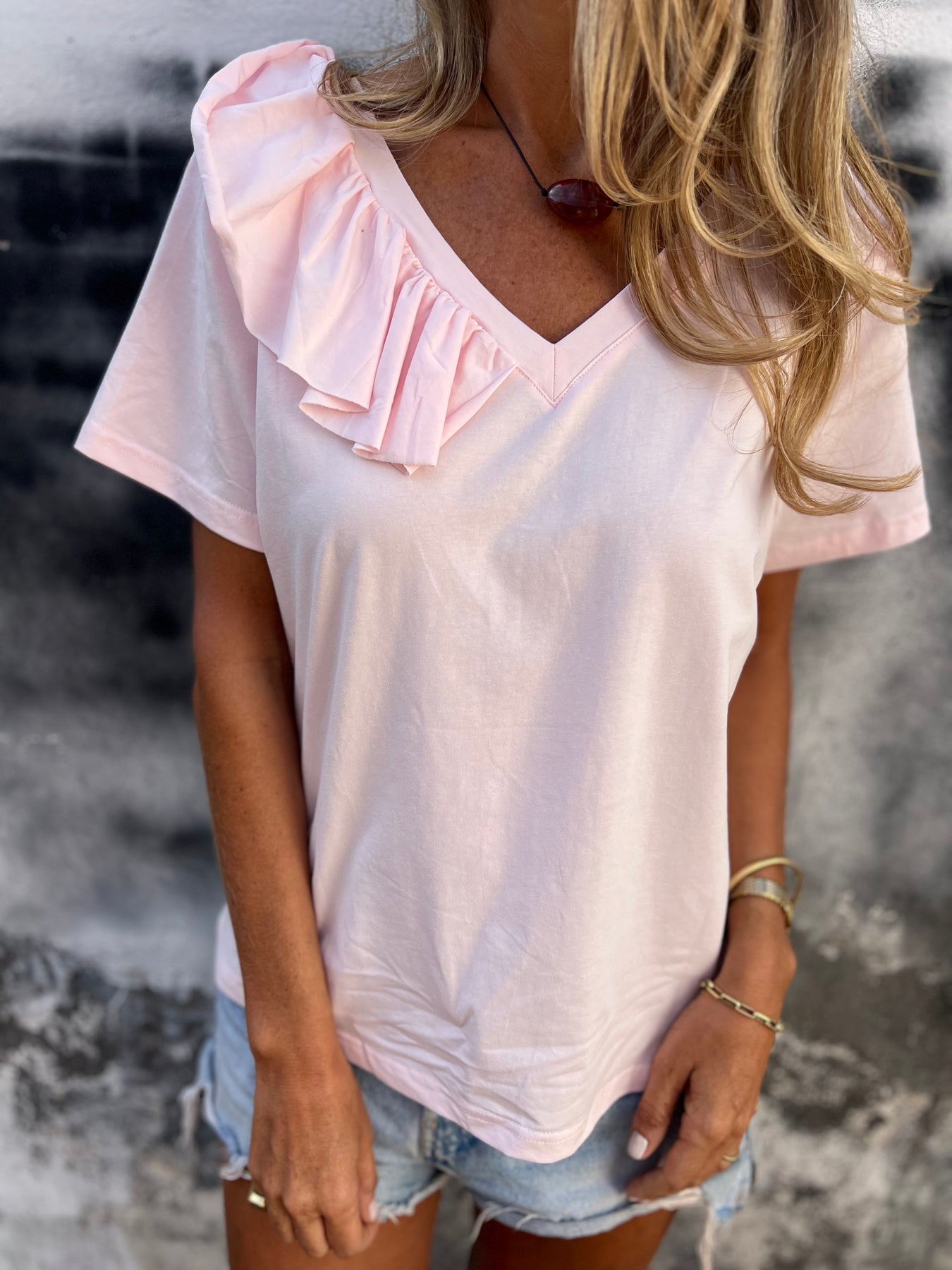 Polera modal 1/2 vuelos rosada