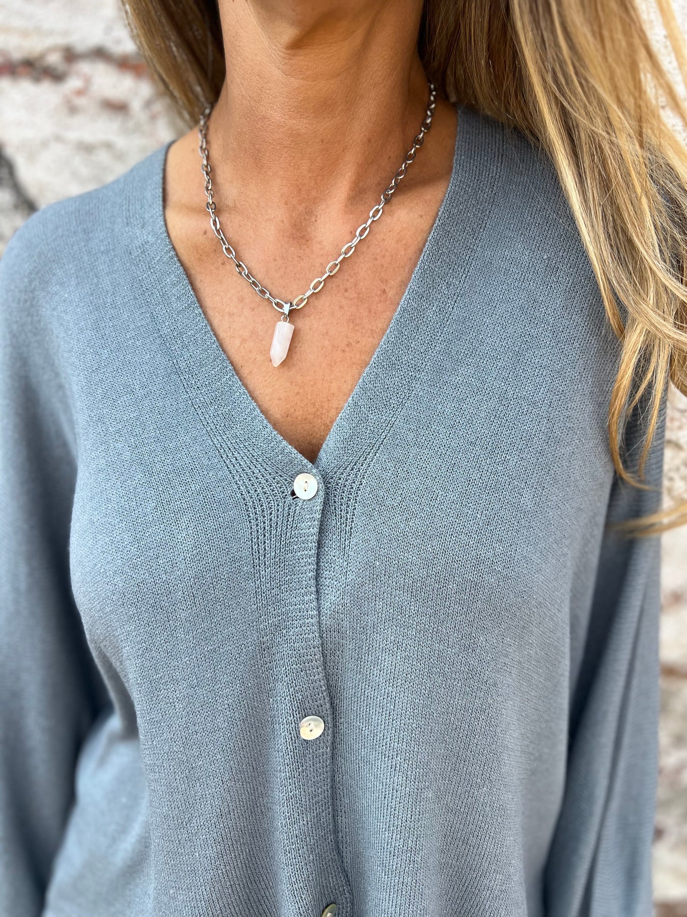Chaleco de hilo delgado muy suave que no pica nada. botón de concha perla. Hecho en Italia