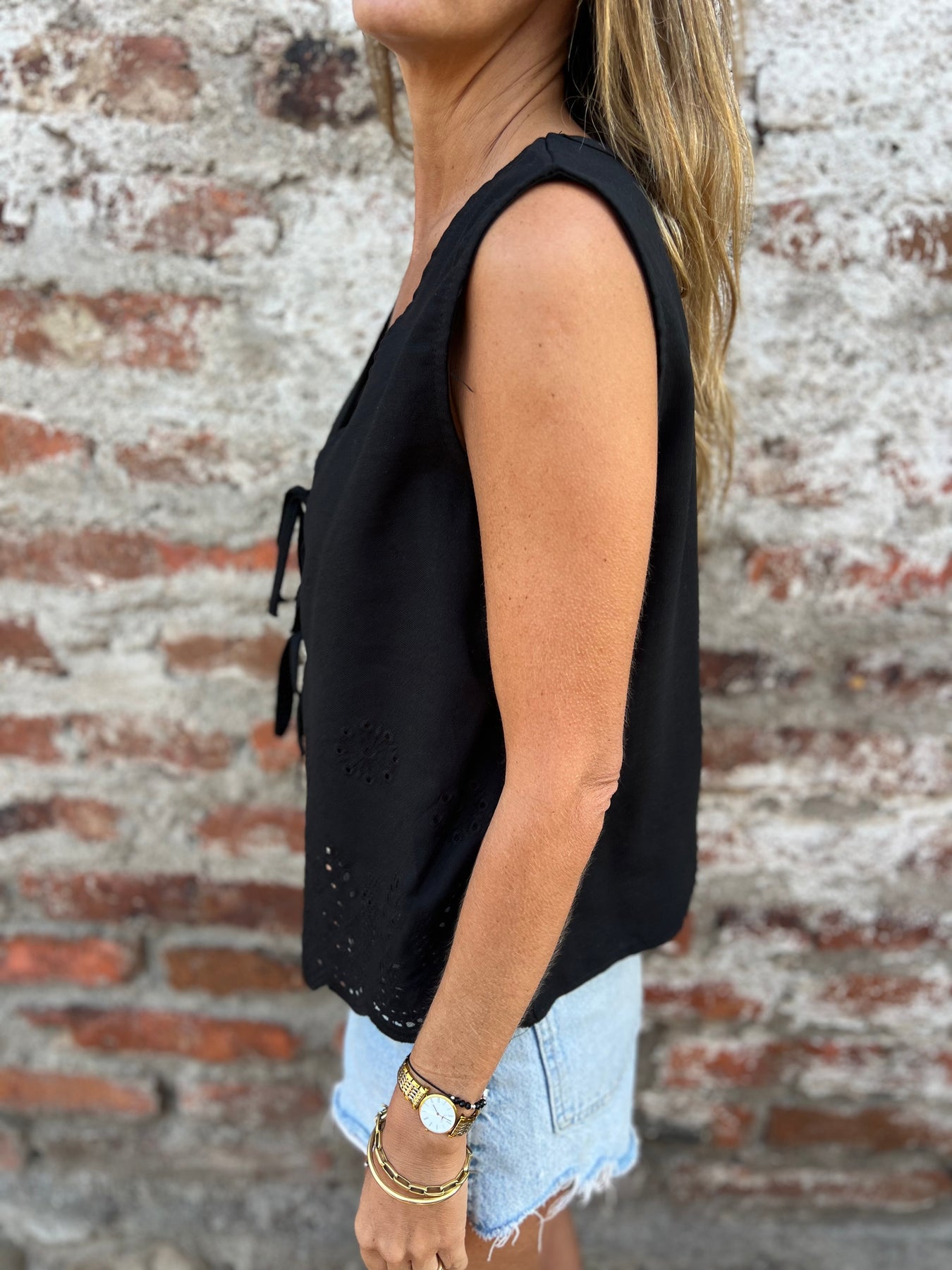 Bolero de algodón con detalles de bordados con amarras