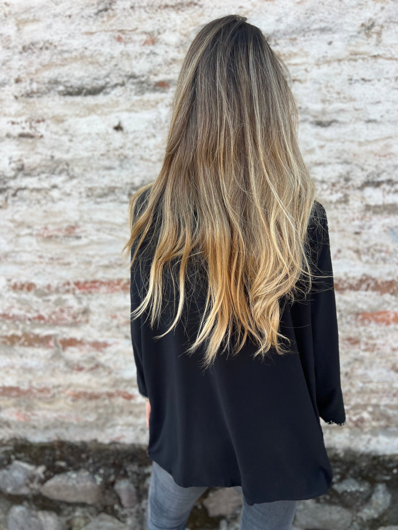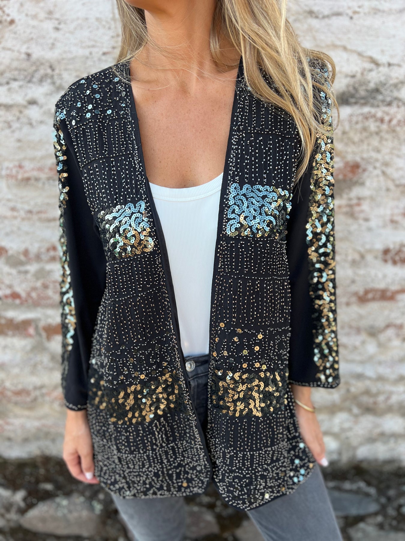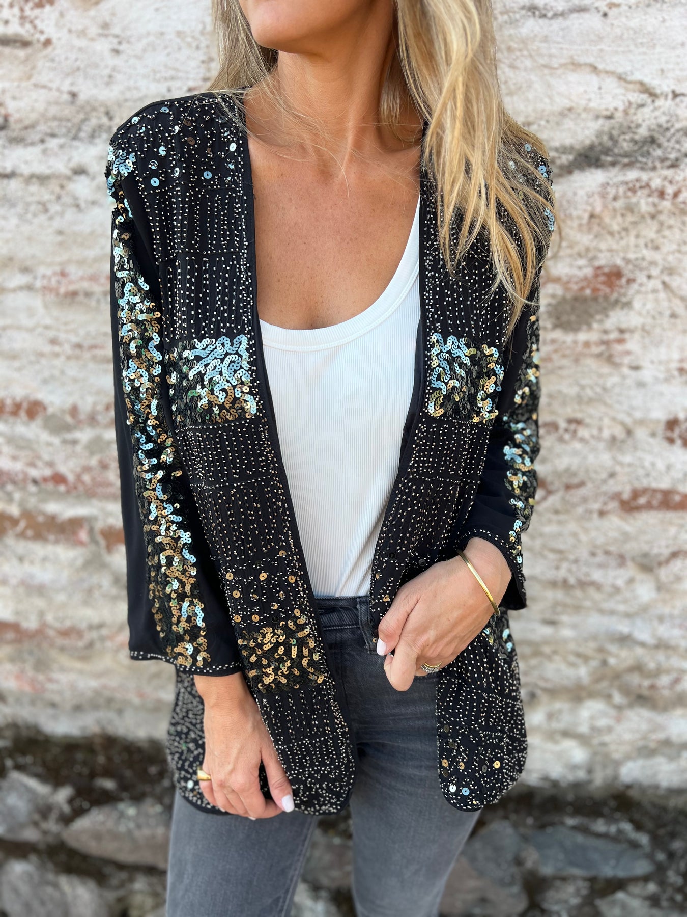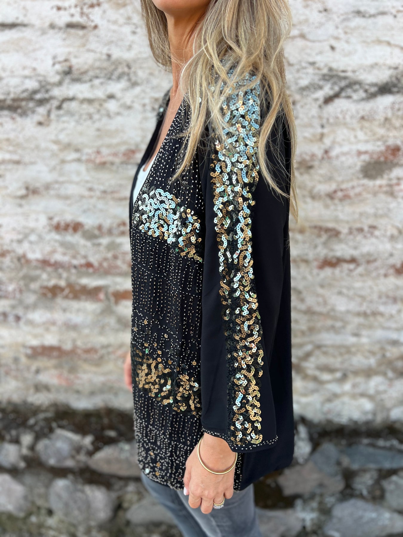 Bomber de lentejuelas bordadas. Forrada. Parte de atrás de tull y cierre. Pretina elasticada.