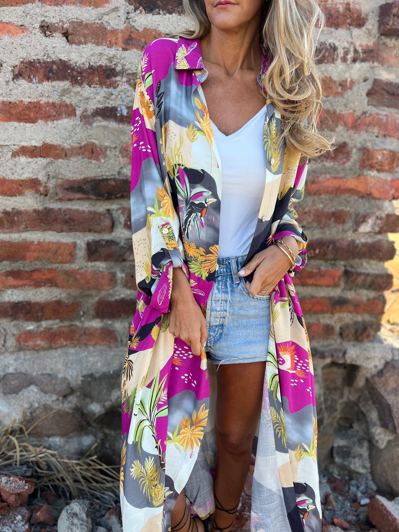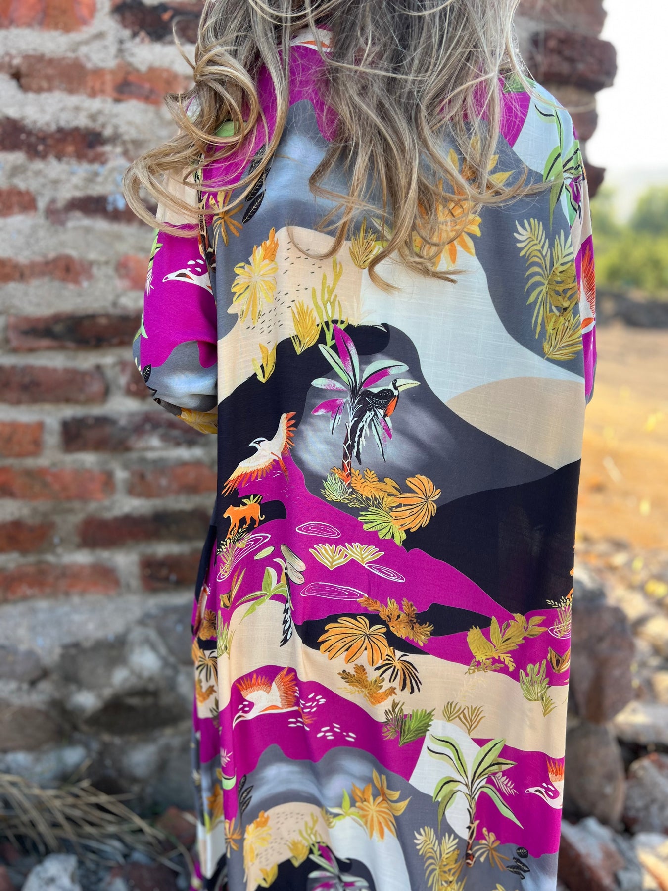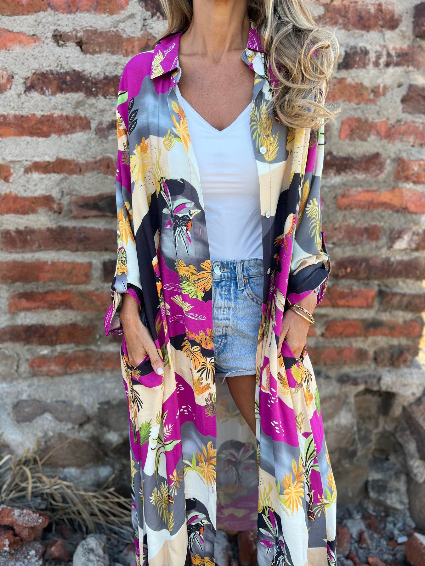 Blusón de viscosa con botones de concha perla