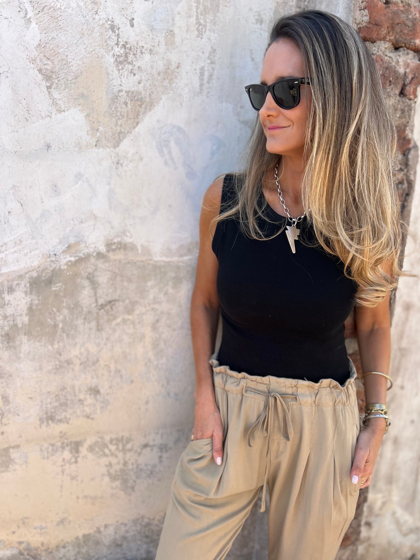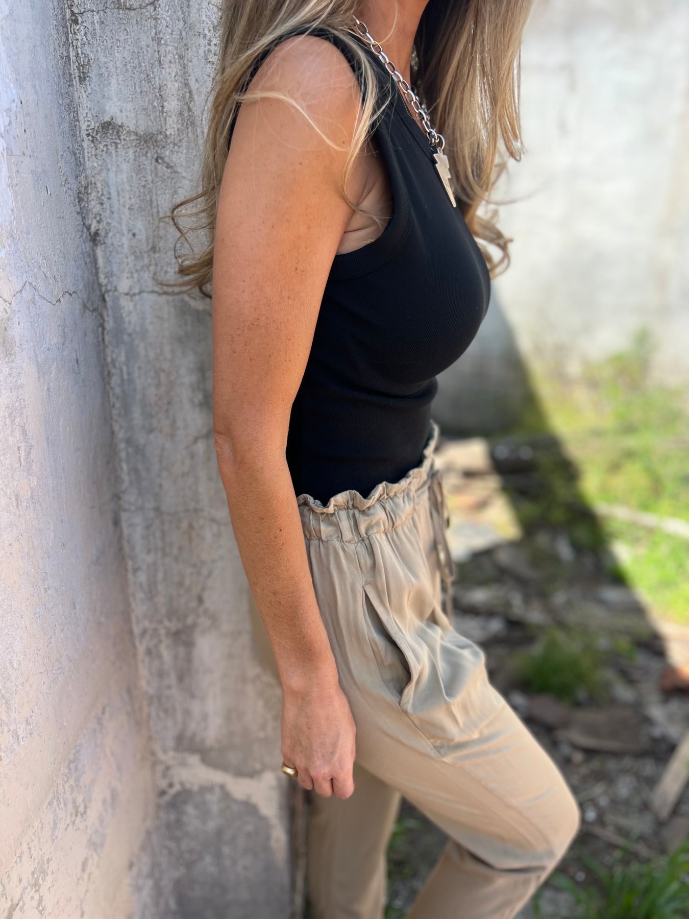 Jogger de viscosa con cintura elasticada y laxo.