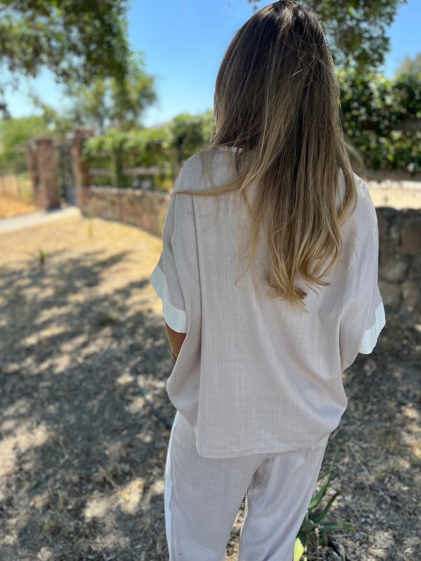 Blusón de linoto delgado con brillos sutiles.